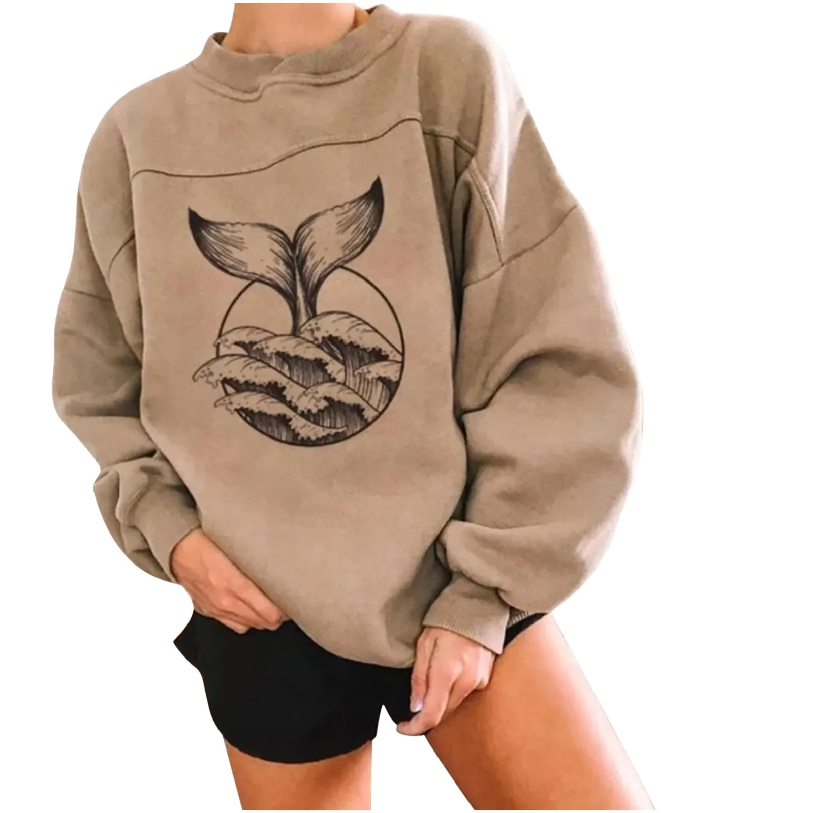 Хит продаж, винтажные толстовки с китовым хвостом, женские повседневные толстовки с длинным рукавом, топы, размера плюс, Женская толстовка, одежда, Прямая поставка