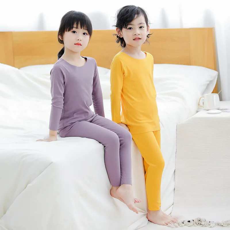 Комплект одежды для мальчиков и девочек, Осень-зима, Термальность нижним бельём Seamless, домашний костюм, комплект из 2 предметов: Топ + штаны, комплект детской одежды, детское платье с длинными рукавами, пижама