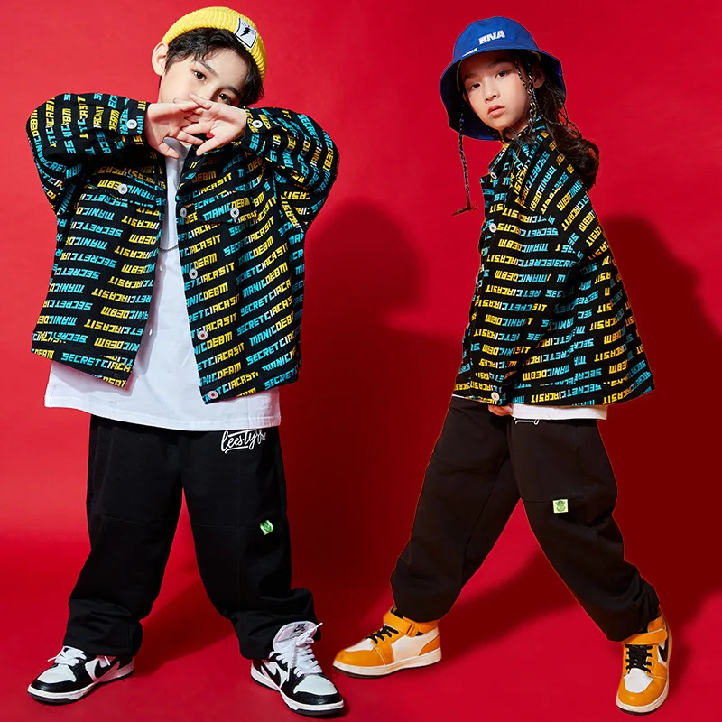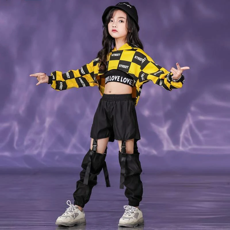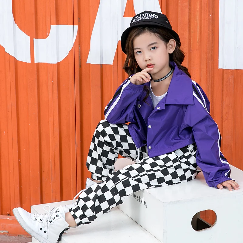 Укороченная куртка для девочек, клетчатые брюки в стиле хип-хоп, детские клетчатые рандомные комплекты, детское джазовое короткое пальто, наряды, костюмы, уличная одежда