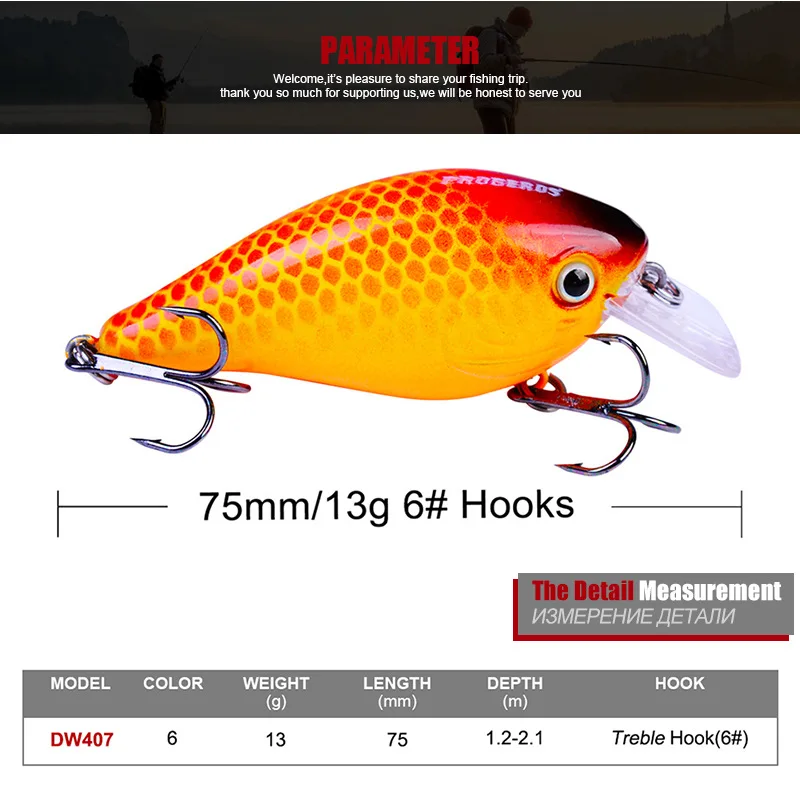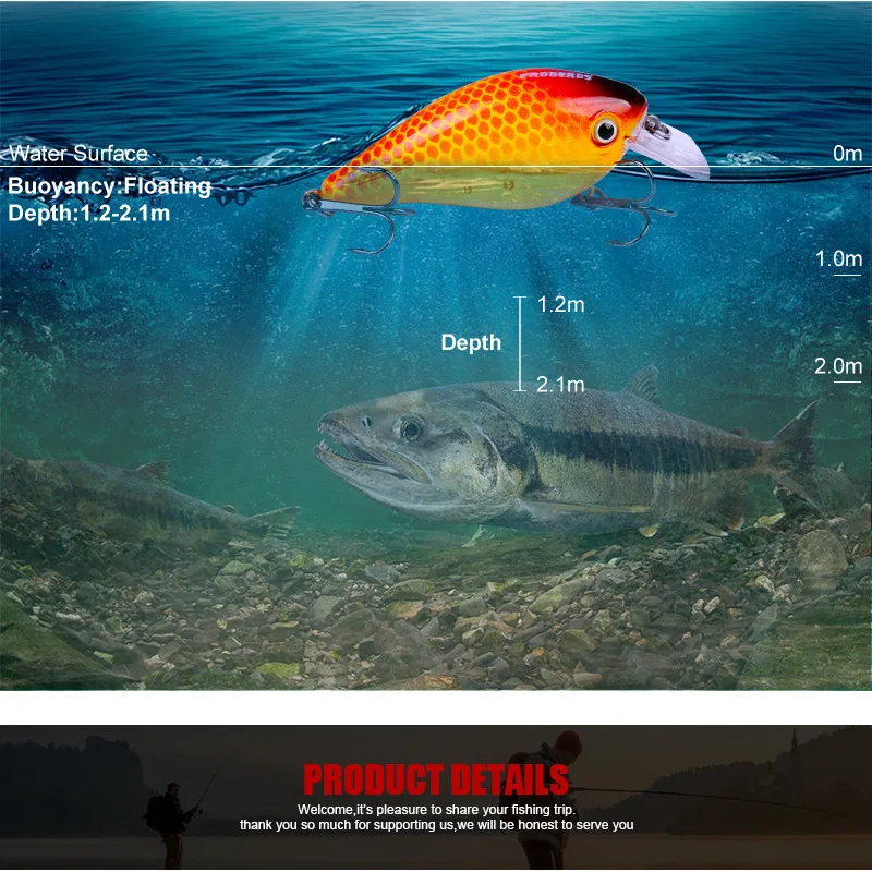 4. Он изготовлен из АБС-пластика, прочный и прочный, устойчивый к падениям и стукам. Стальные шарики, используемые внутри, были протестированы с помощью точных инструментов для обеспечения плавательного стиля каждой приманки.