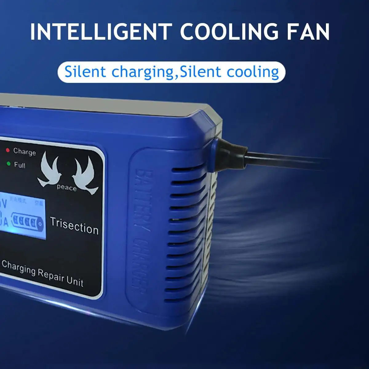 Характеристики:-Простота в использовании.-Высокая эффективность и надежность.-Высокотехнологичное умное самобалансирующееся зарядное устройство-Быстрая зарядка с автоматическим контролем постоянного тока предотвращает перезарядку батареи, короткое замыкание и электронный шок.-Импульсная Зарядка для защиты аккумулятора