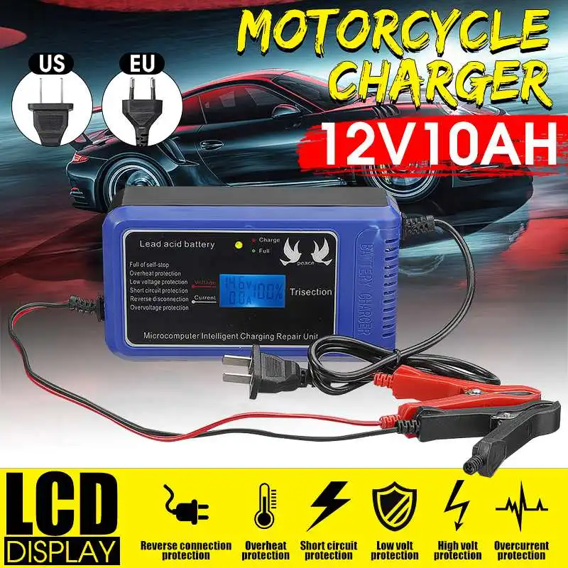Умное быстрое автомобильное зарядное устройство 12 в 10 А с ЖК-дисплеем для авто мотоцикла свинцово-кислотные AGM гелевые батареи интеллектуальная зарядка 12 В 10 А