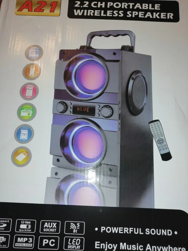 Колонка не выдаёт заявленной мощности. АКБ в 2 раза слабей заявленной 3000 мА. Максимум что может выдать колонка 28 Ват при полном заряде в пике. Подделка не соответствует заявленным параметрам. Собрана на 4х усилителях NS4110B источник питания 8 вольт пока АКБ заряжен, что говорит по даташиту микросхемы о 7 Ват звука. В общем покупать или нет делать выбор вам но реальная цена этой колонки 1500-2000 рублей.