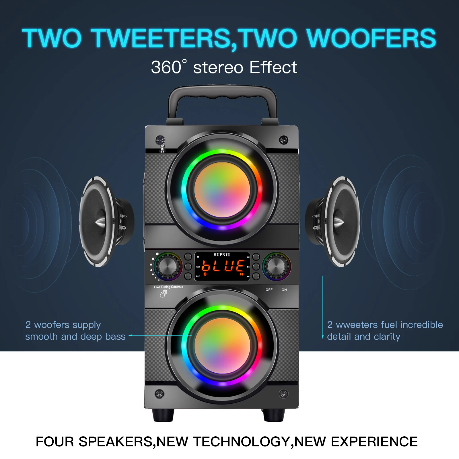 Bluetooth-Колонка TOPROAD, 60 Вт, портативная, беспроводная, стерео, бас, сабвуфер, караоке, для вечеринок, динамик s с RGB светодиодный светильник кой, поддержка FM-радио