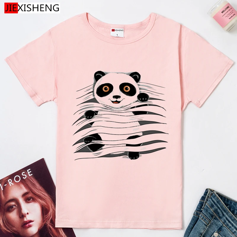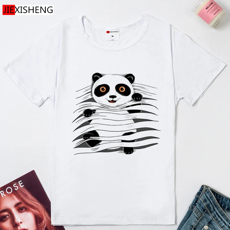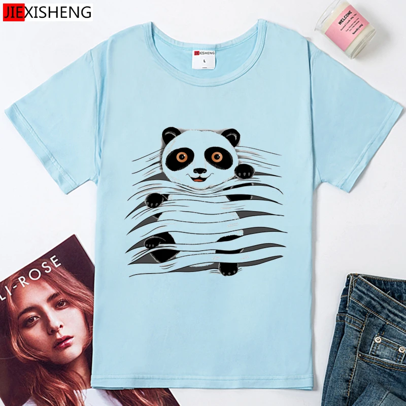 Футболка женская оверсайз с 3D-принтом панды, Повседневная Свободная смешная рубашка, топ с коротким рукавом и круглым вырезом, 5 цветов, на лето