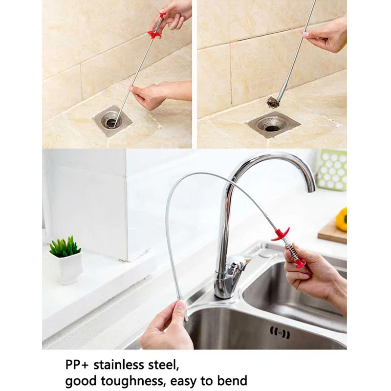 60 см дренажная змеевидная пружина, дренажный инструмент, дренажная змея для кухонной раковины, ванны, туалета, дренажный инструмент для труб
