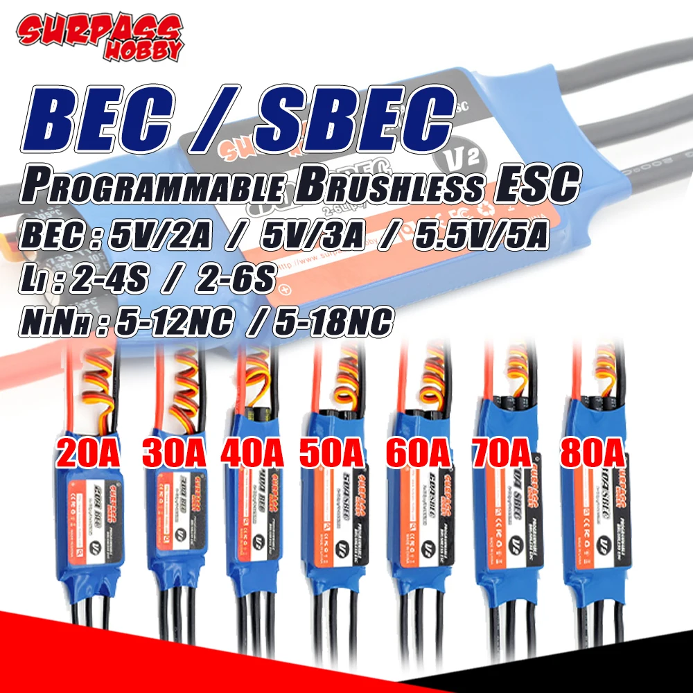 SURPASS HOBBY SBEC BEC бесщеточный ESC 20A 30A 40A 50A 60A 70A 80A для мотора Outrunner RC самолеты с фиксированным крылом планера Warbirds DYS