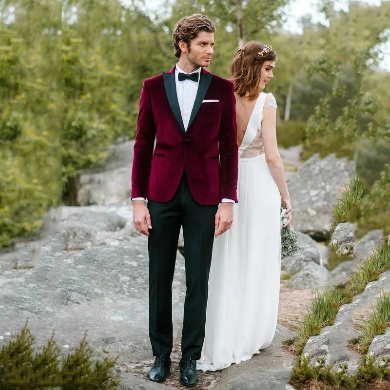 Облегающие бархатные Мужские костюмы для свадьбы цвета Бургунди 2021, костюм для жениха, смокинг, Мужской Блейзер, 2 предмета, пальто и брюки, Terno Masculino