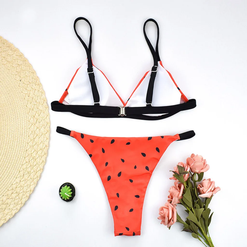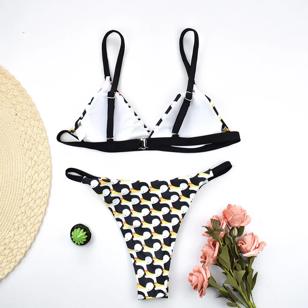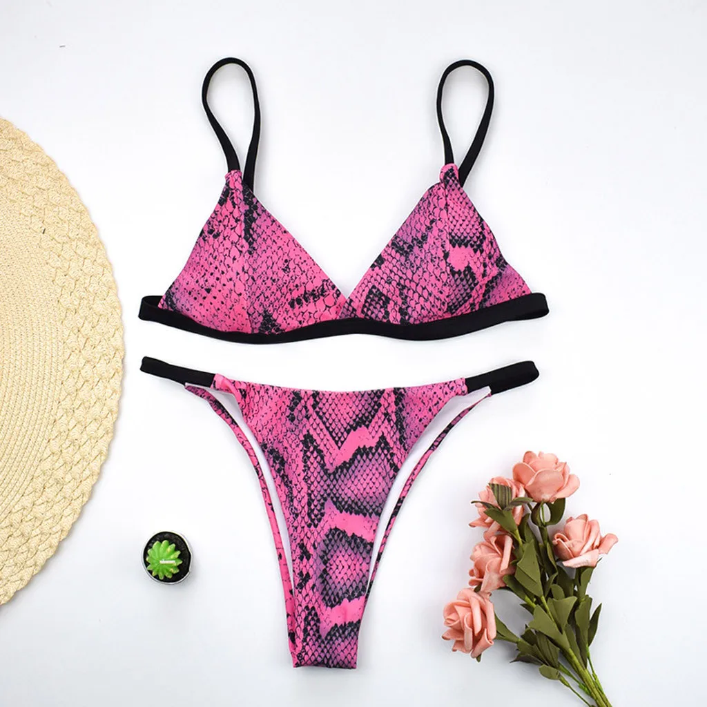 Купальник женский из двух предметов, пикантный купальник с принтом, Бразильское бикини с высоким вырезом, комплект для плавания, женский купальник