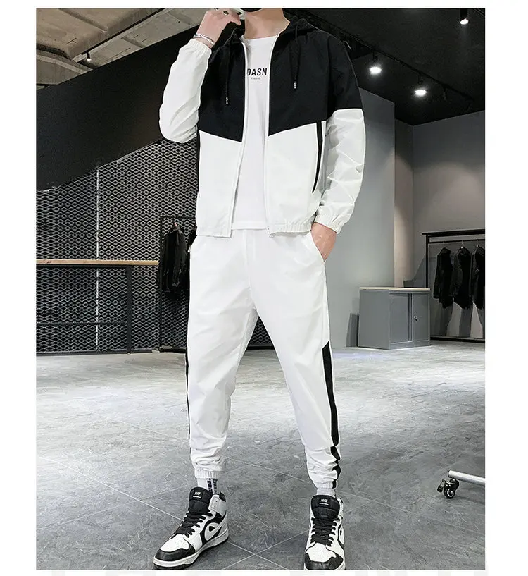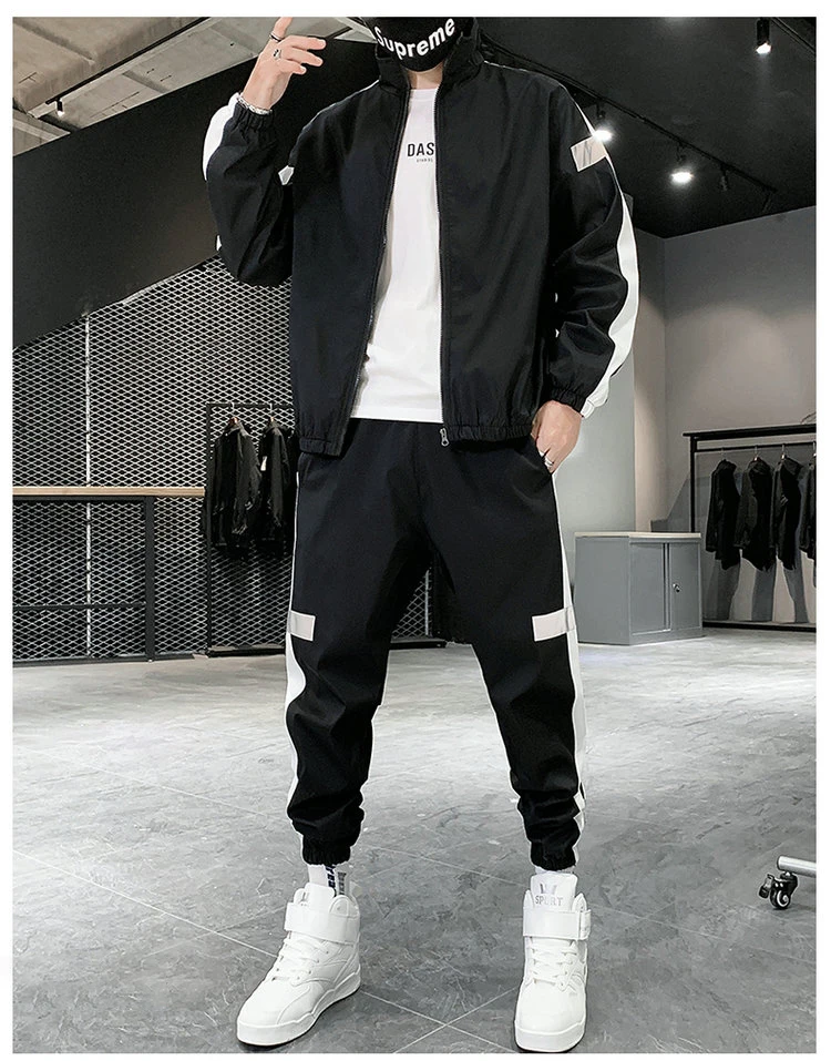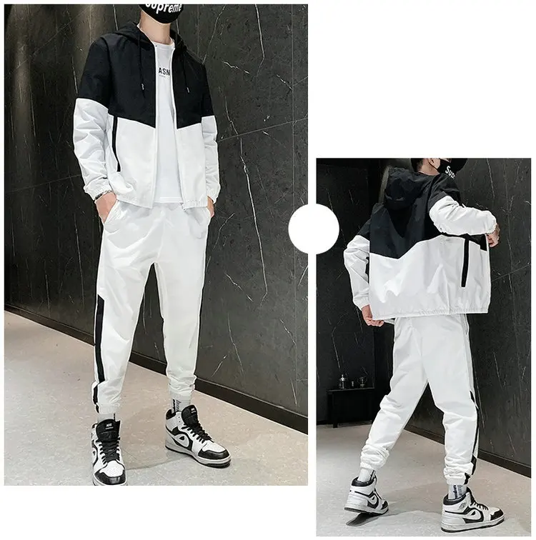 Мужской повседневный костюм-двойка, спортивный костюм составного кроя в Корейском стиле, в стиле хип-хоп, в стиле колледжа, китайская уличная одежда для фитнеса, 2021, XS-3XL