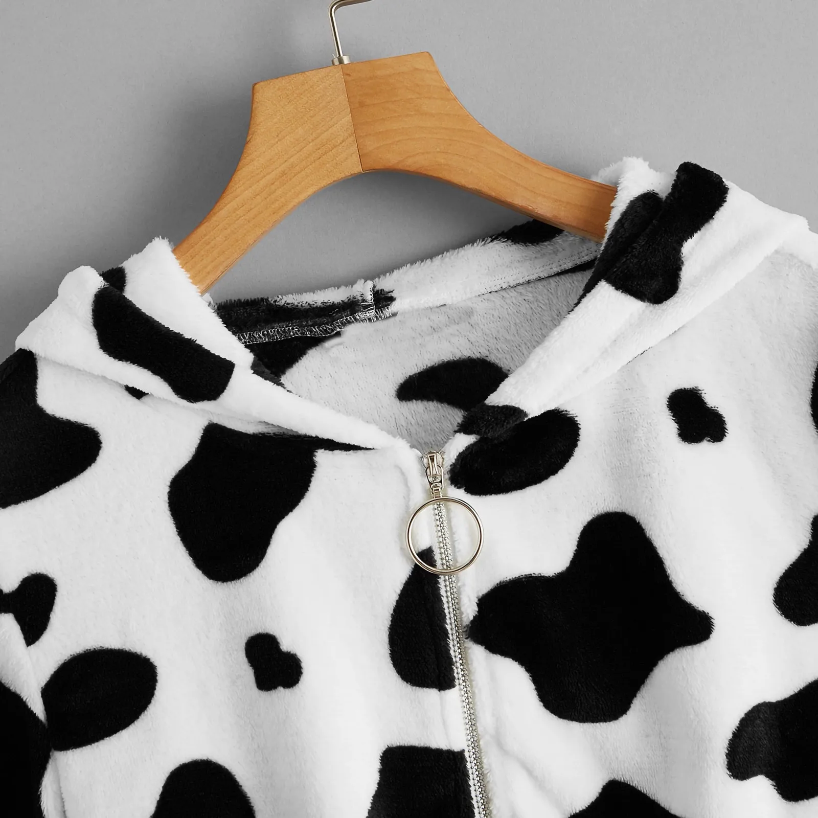Женский пуловер с коровьим принтом, смешной свитшот с длинным рукавом в стиле Харадзюку, милая толстовка с капюшоном для весны и осени, Прямая поставка