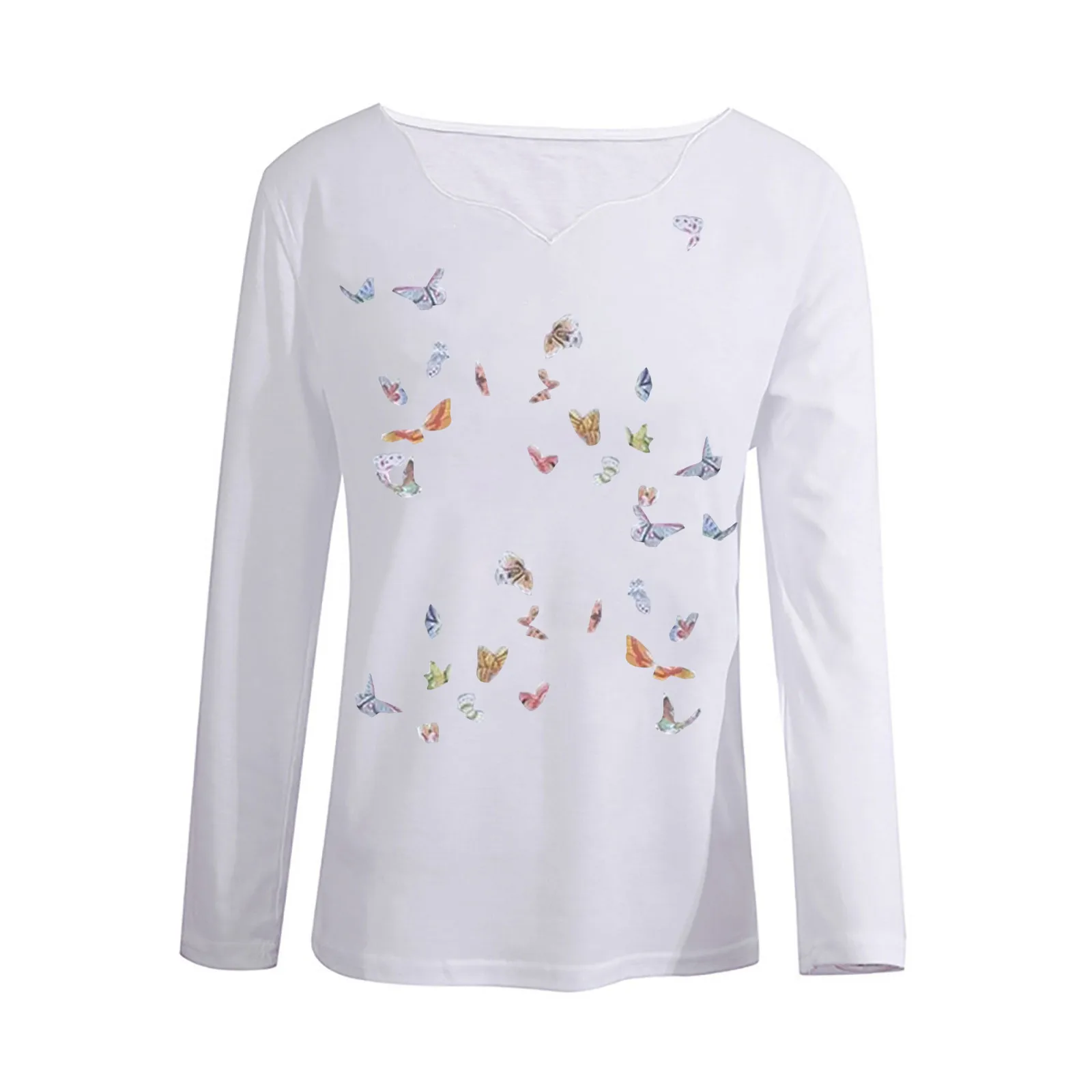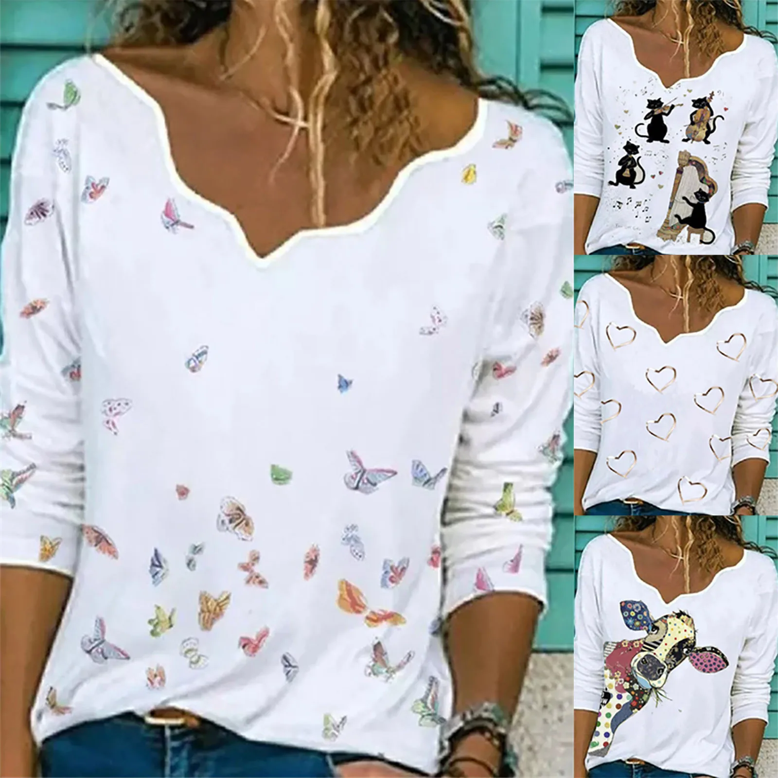 Женская Рубашка с длинным рукавом, Повседневная Блузка с V-образным вырезом и принтом, Весенняя туника с длинным рукавом-бабочкой, размера плюс