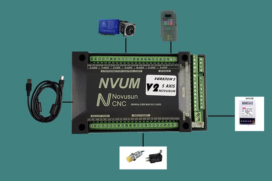 NVEM/NVUMV2.1 представляет собой с диагональю экрана 3-6 оси motion контроллер. Он поддерживает программное обеспечение Mach3 и стандартный MPG и поддерживает связь с компьютерами через Ethernet и USB, только с помощью Twine для прямого подключения или передачи с маршрутизаторами. Контроллер движения NVEM/NVUMV2.1 принимает рамки дизайна руки. Дизайн ARM включает коммуникацию, совместный анализ, базовый алгоритм и генерацию импульсов. Разумный дизайн, надежный контроль и удобная эксплуатация. .