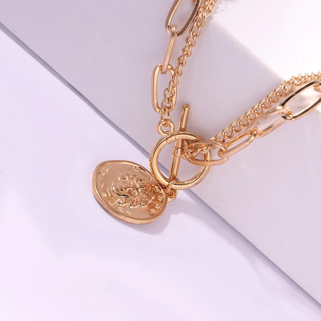 Женское Ожерелье с кулоном, винтажное металлическое многослойное ож...