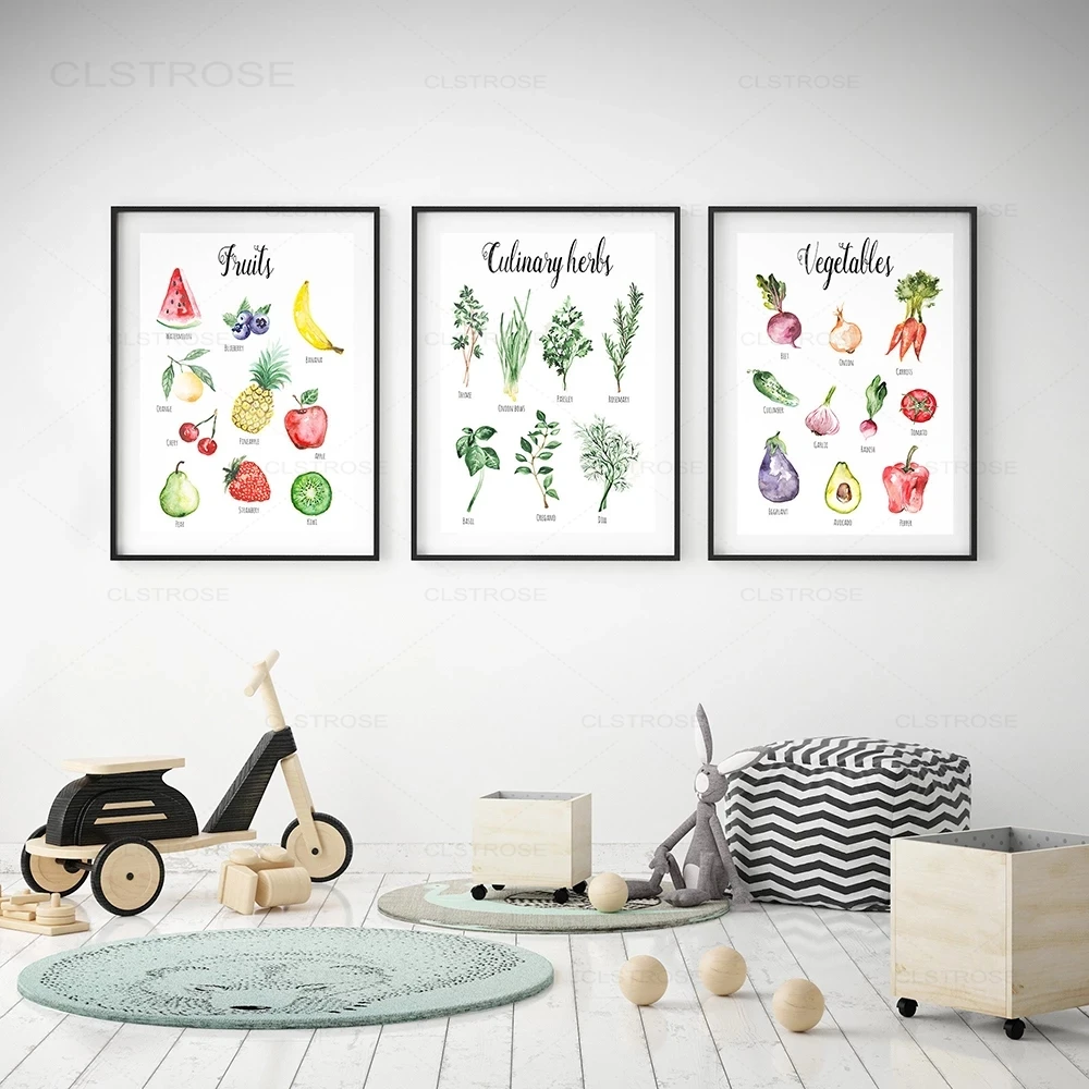 Мультяшные Овощи, фрукты, Кулинария, травы, плакат, холст, печать, Античная стена, Художественная печать, ботаническая картина, плакат на научную тематику кухонный Декор