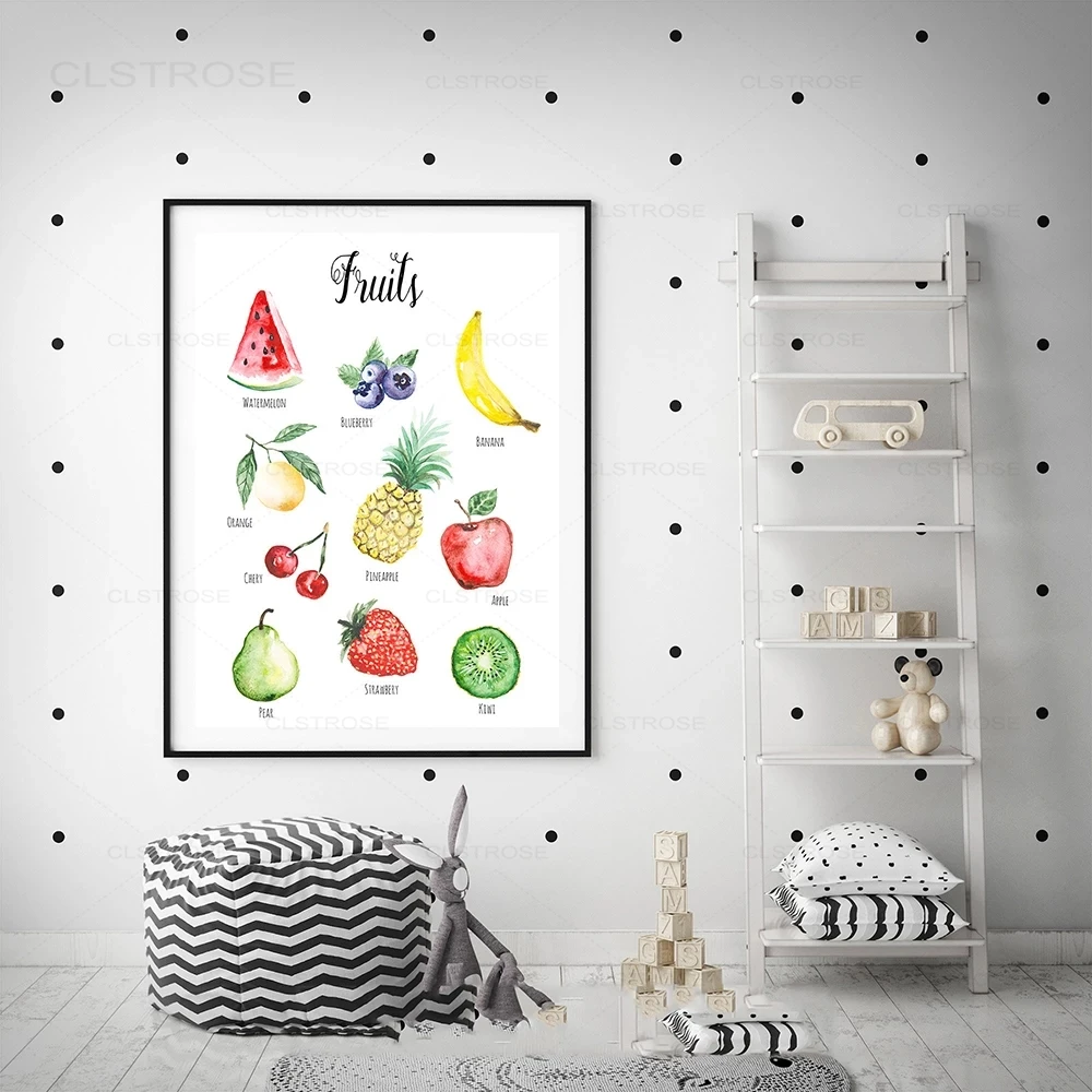 Кухонные акварельные забавные постеры и принты продукты фрукты холс...