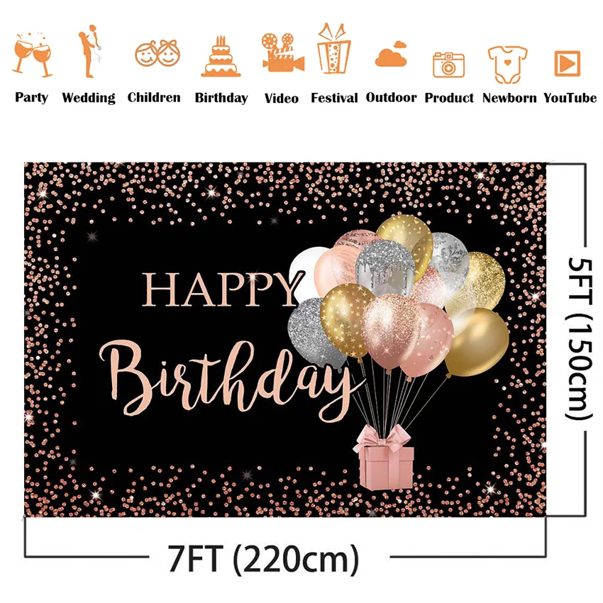Счастливый День Рождения украшения фон для фотографирования черного...