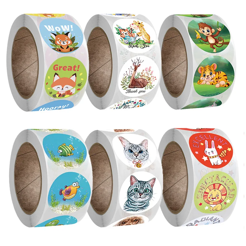 Новинка 500 шт.рулон наклейки с животными для детей преподаватель н...