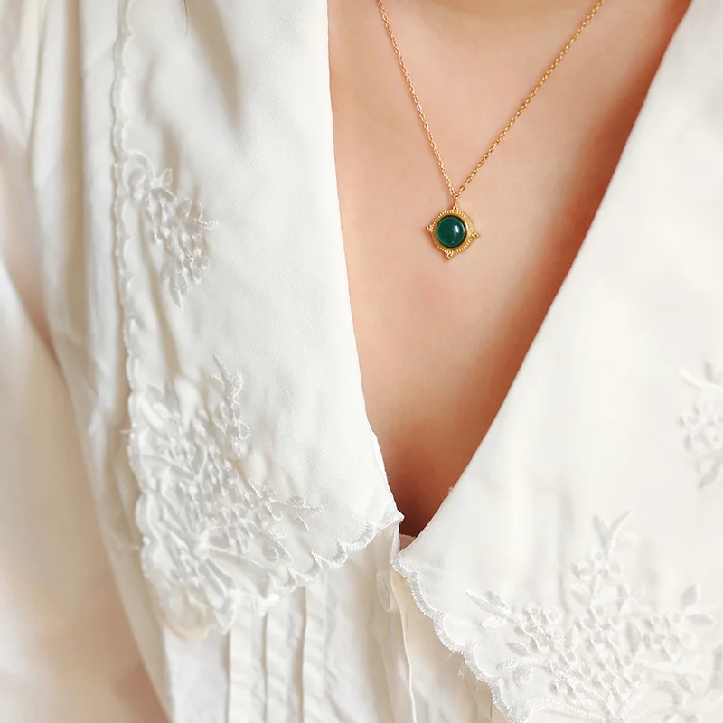 Материал: цепочка из нержавеющей стали 316L, кулон из зеленого Агата