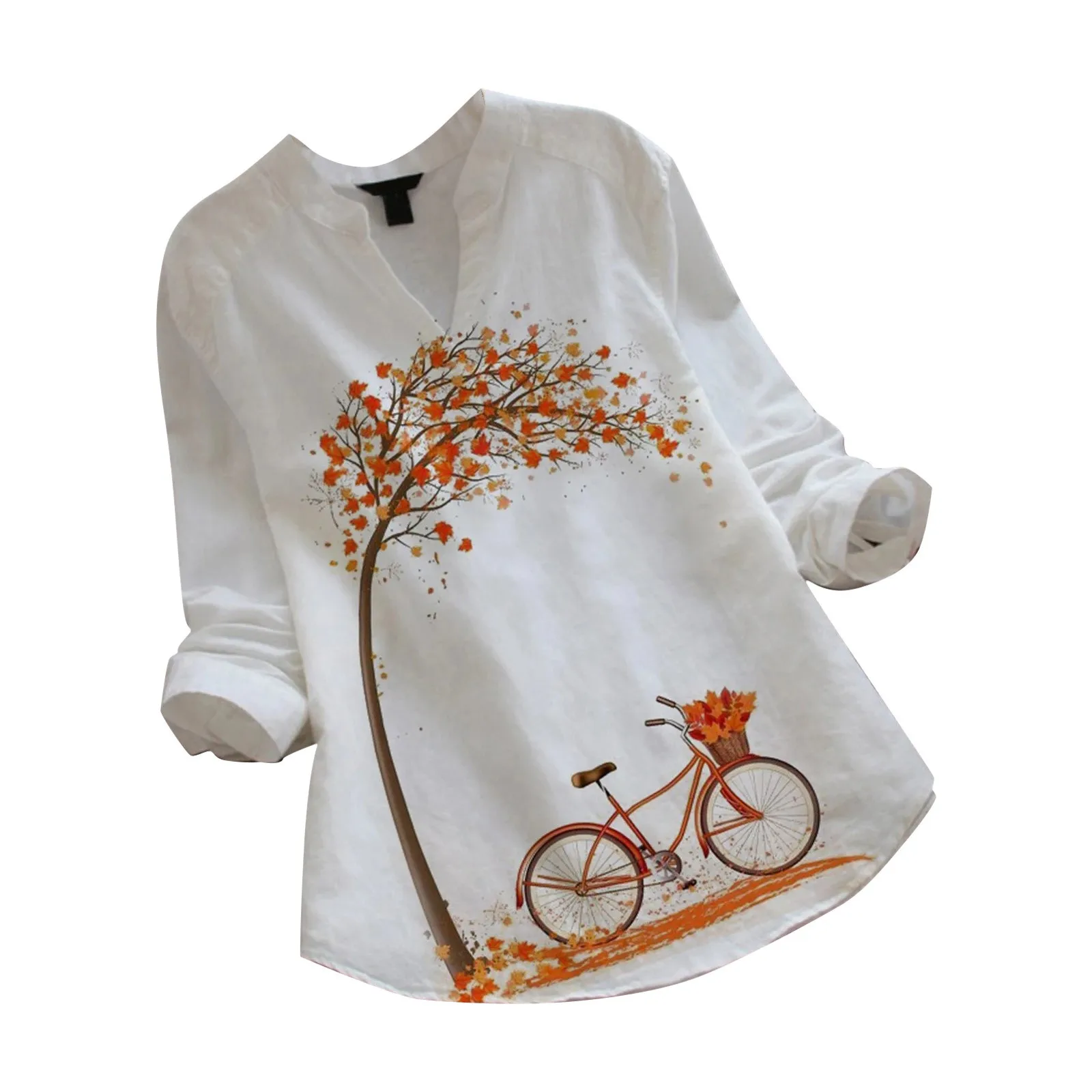 Женская блуза на пуговицах, с цветочным принтом, длинным рукавом и V-образным вырезом