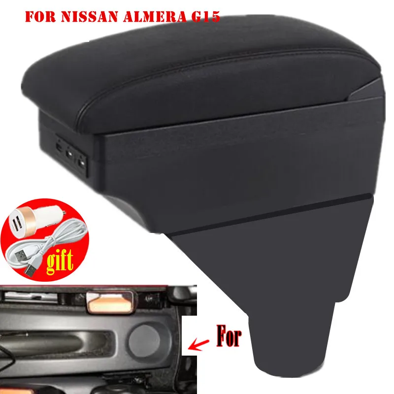 Подлокотник для Nissan Almera G15, центральный контейнер для хранения, декоративный аксессуар для стайлинга автомобиля с подстаканником USB