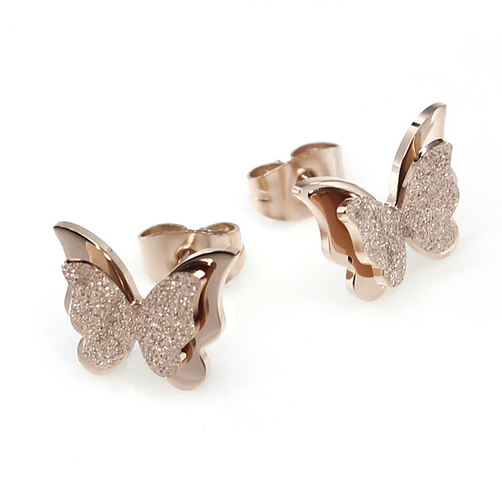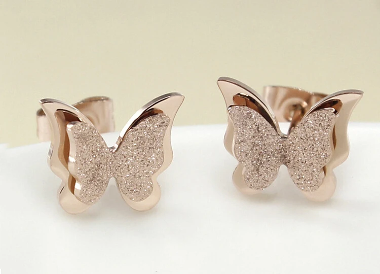 Изысканные модные матовые женские серьги с бабочками AliExpress в европейском и американском стиле с покрытием из розового золота