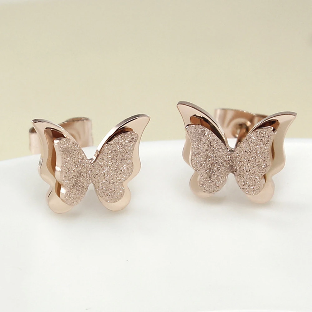 Серьги-гвоздики цвета розового золота из титановой стали с бабочкой...