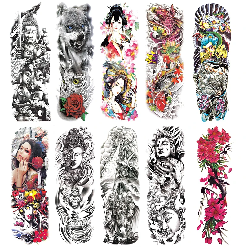 Большой рукав на руку, тату, временная наклейка, водостойкая, Сова, карп, Череп, гейши, роза, наклейки, волк, дьявол, горячая жена, крутые вещи, поддельные тату