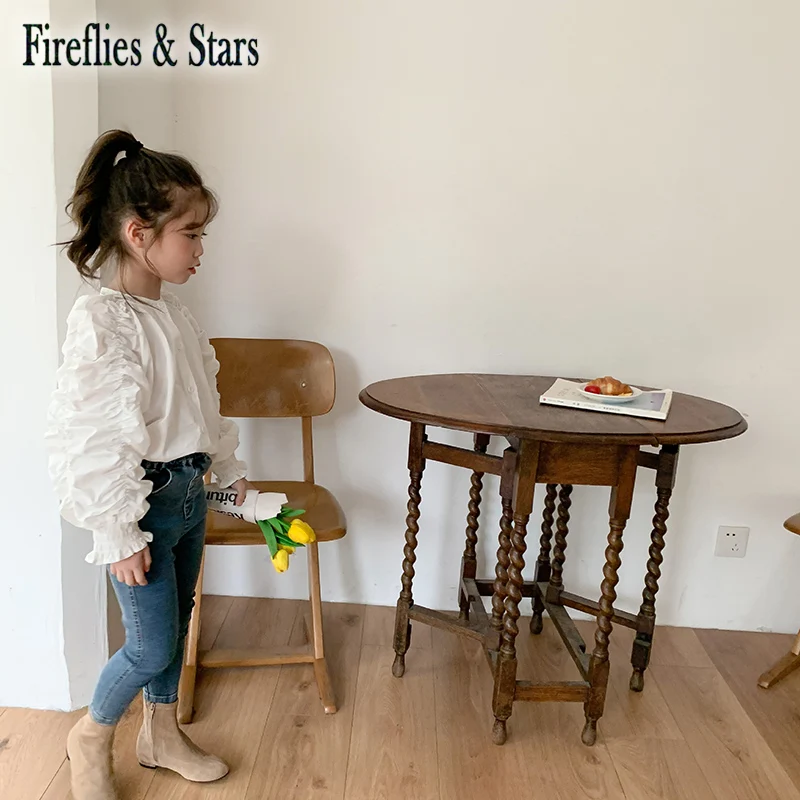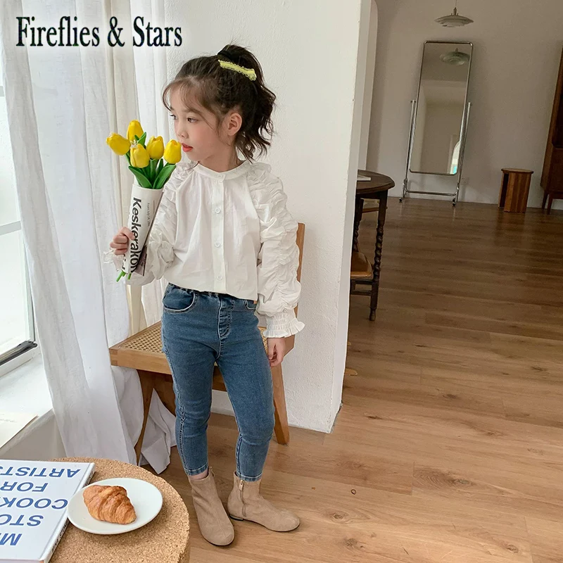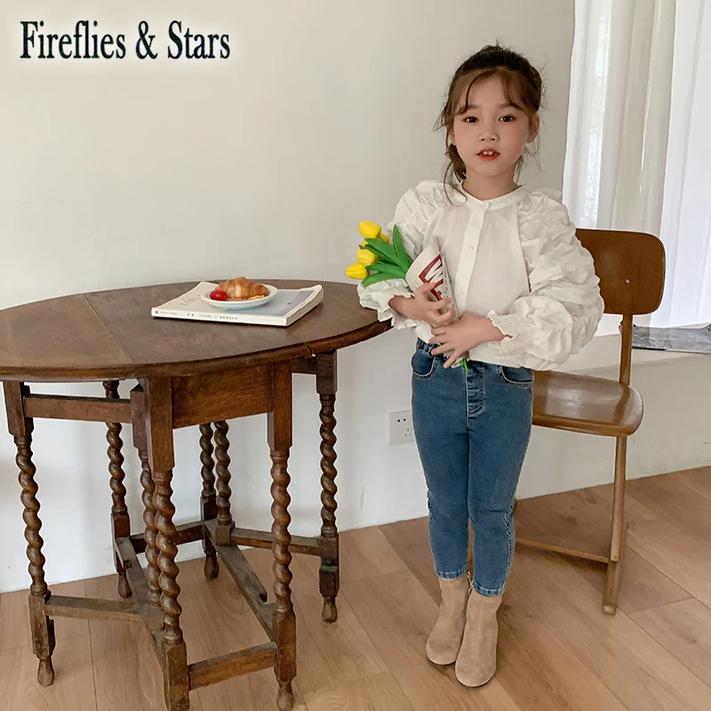 Имя:Демисезонная блузка для девочек Рубашка для малышей Детские топы, детская одежда новая модная белая эластичная плиссированная блузка с пышными рукавами для детей от 2 до 9 лет