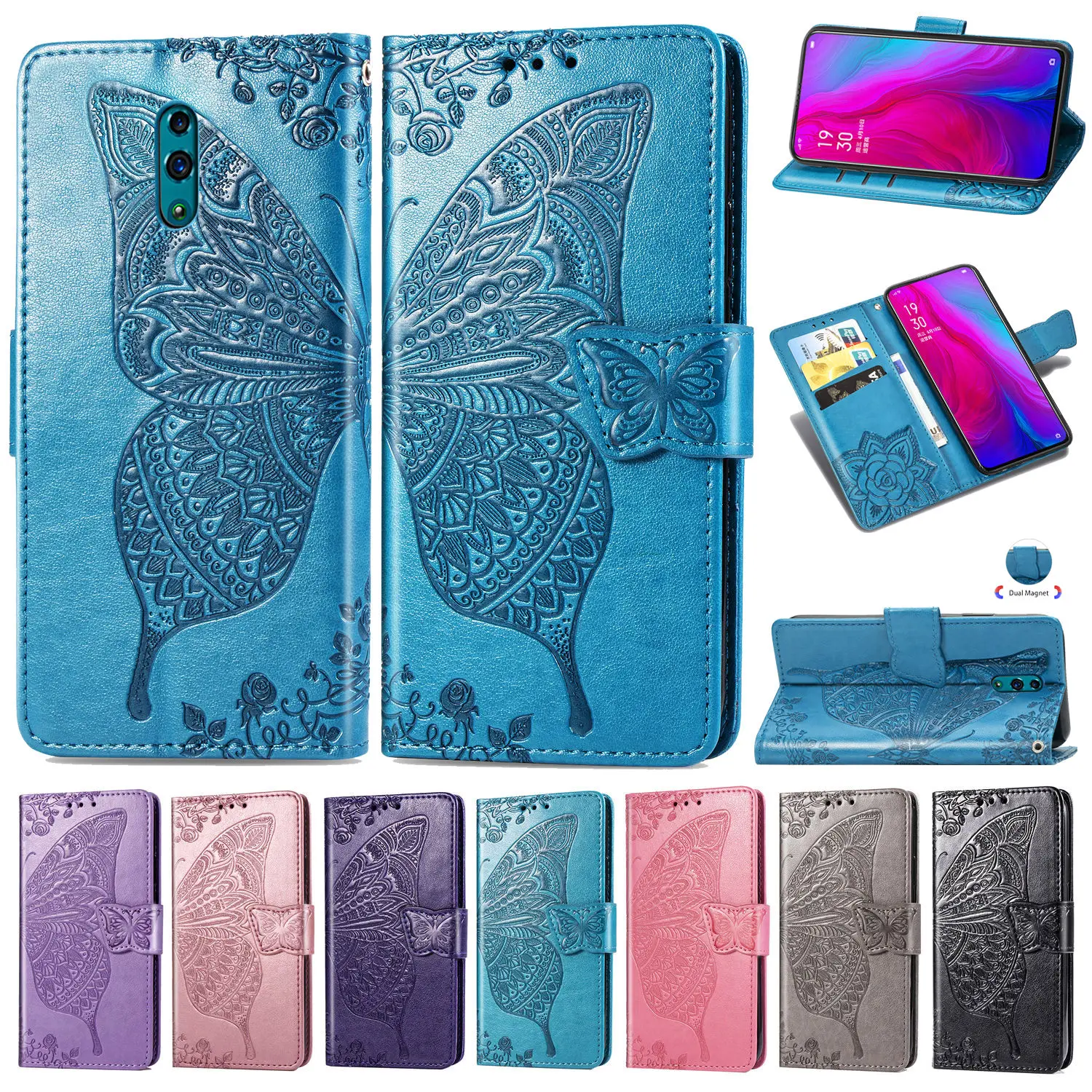 Чехол с милыми бабочками для Oppo Reno (4G VER.) 6.4in крышка флип кожаный бумажник-книжка чехол для телефона с изображением на задней панели сумка OppoReno CPH1917 BBK 1917