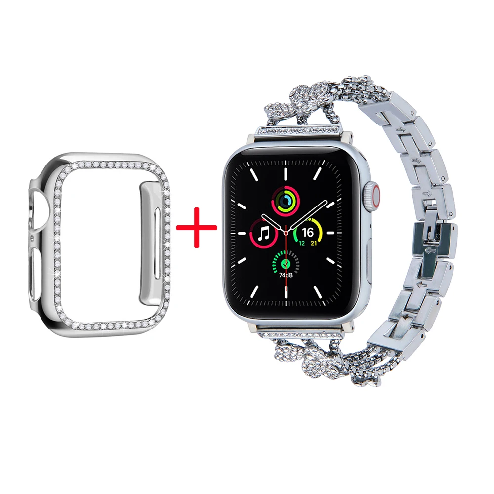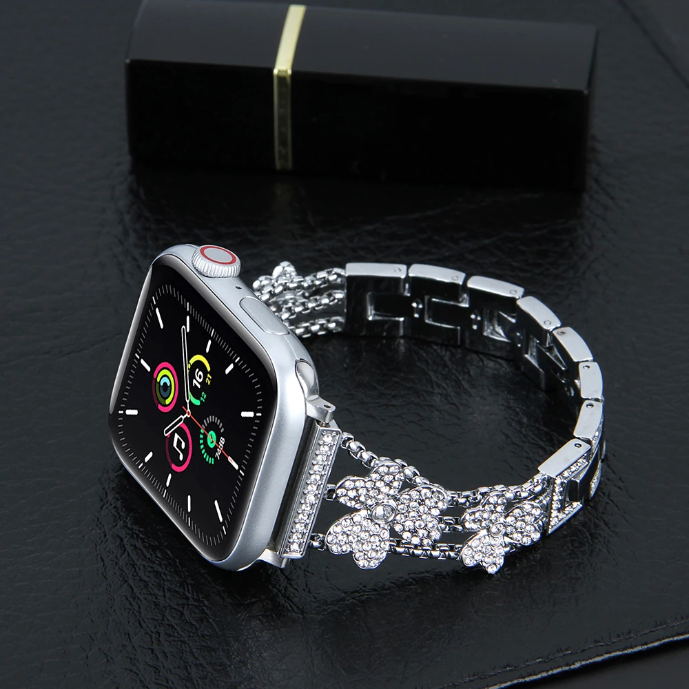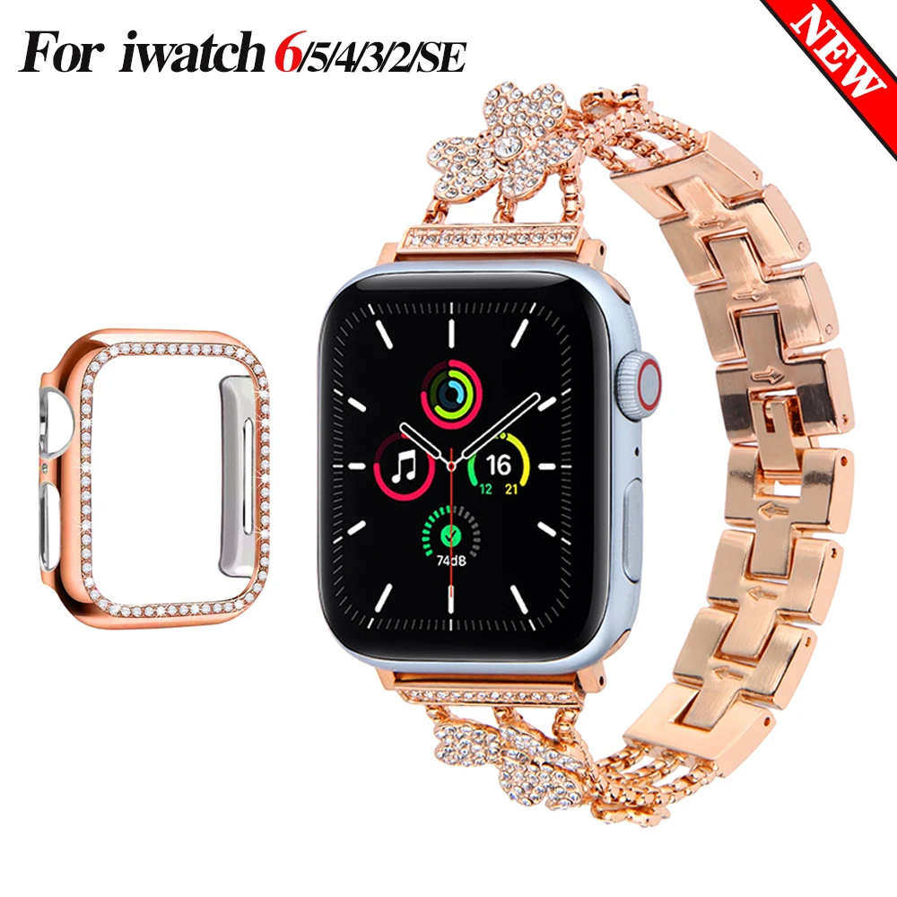 Ремешок для Apple Watch Series 6, 5, 4, 3, 2, 1, женский, с бриллиантами, браслет из нержавеющей стали для iWatch 6, 44, 40, 42, 38 мм