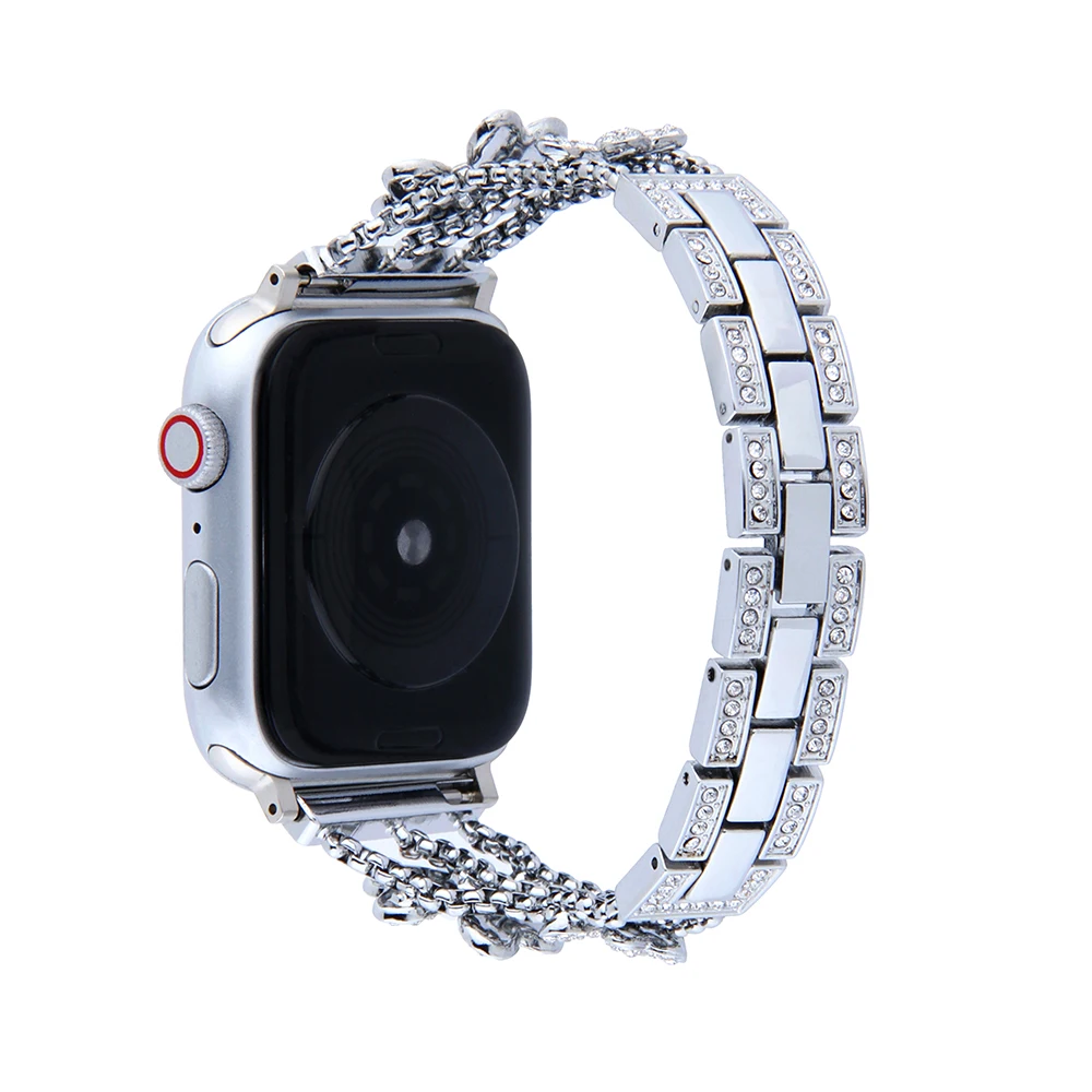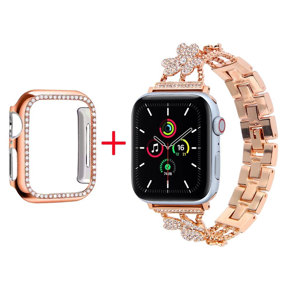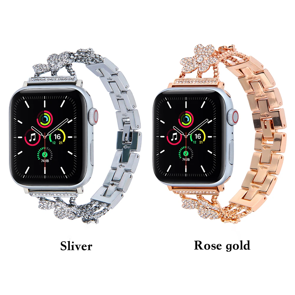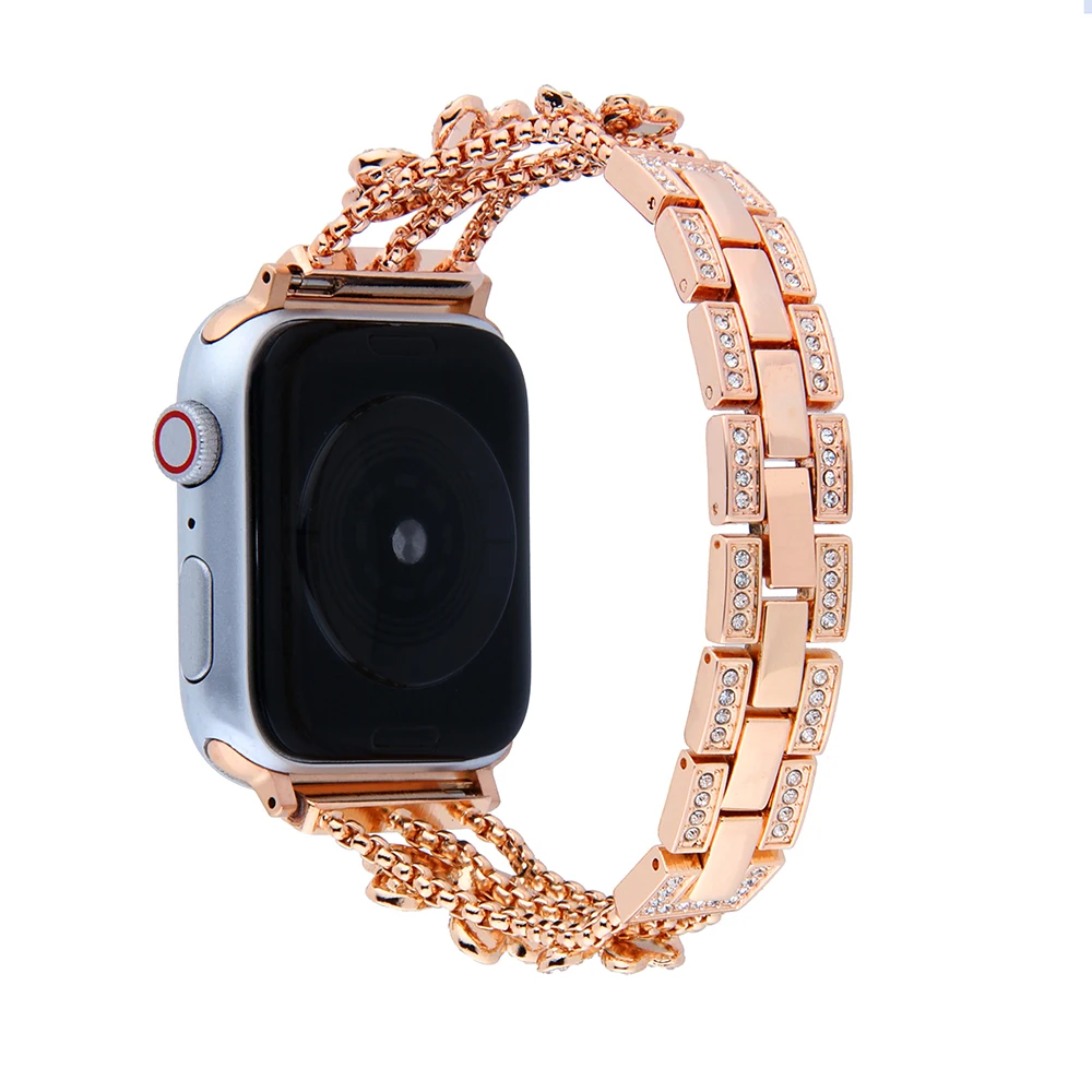 Ремешок для Apple Watch Series 6, 5, 4, 3, 2, 1, женский, с бриллиантами, браслет из нержавеющей стали для iWatch 6, 44, 40, 42, 38 мм