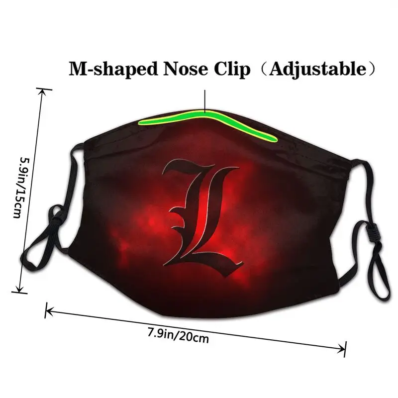 Многоразовая маска с символикой Death Note L, маска для взрослых, Аниме Манга, мужская, женская, мужская, защитный чехол, респиратор