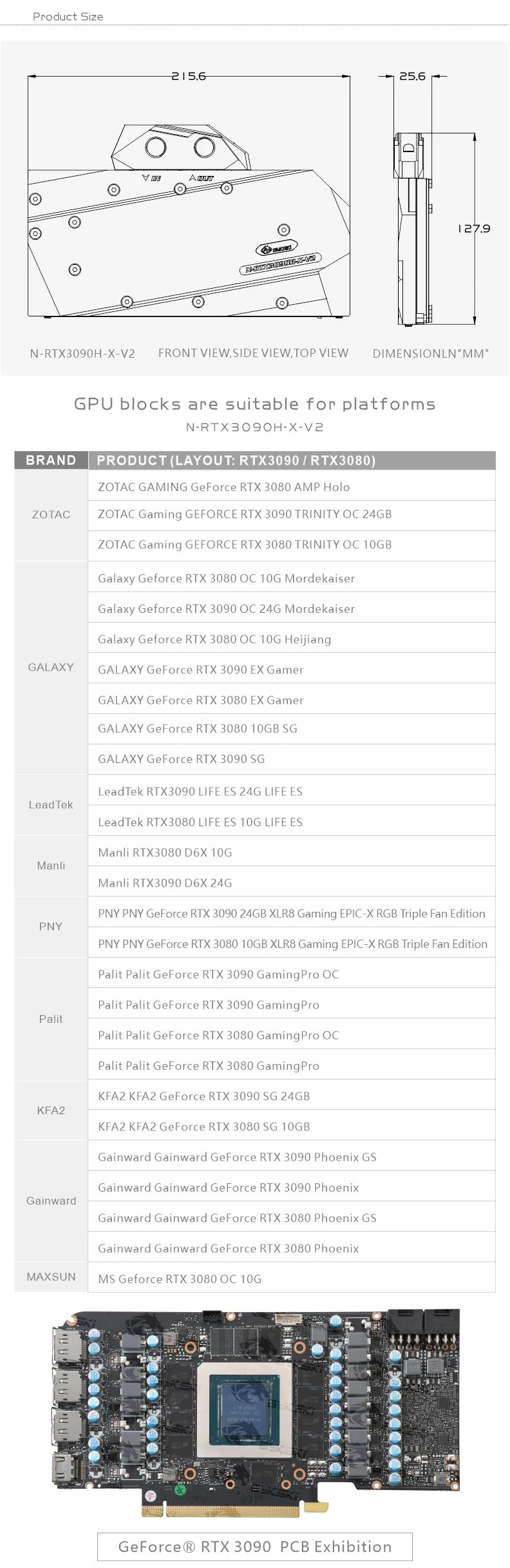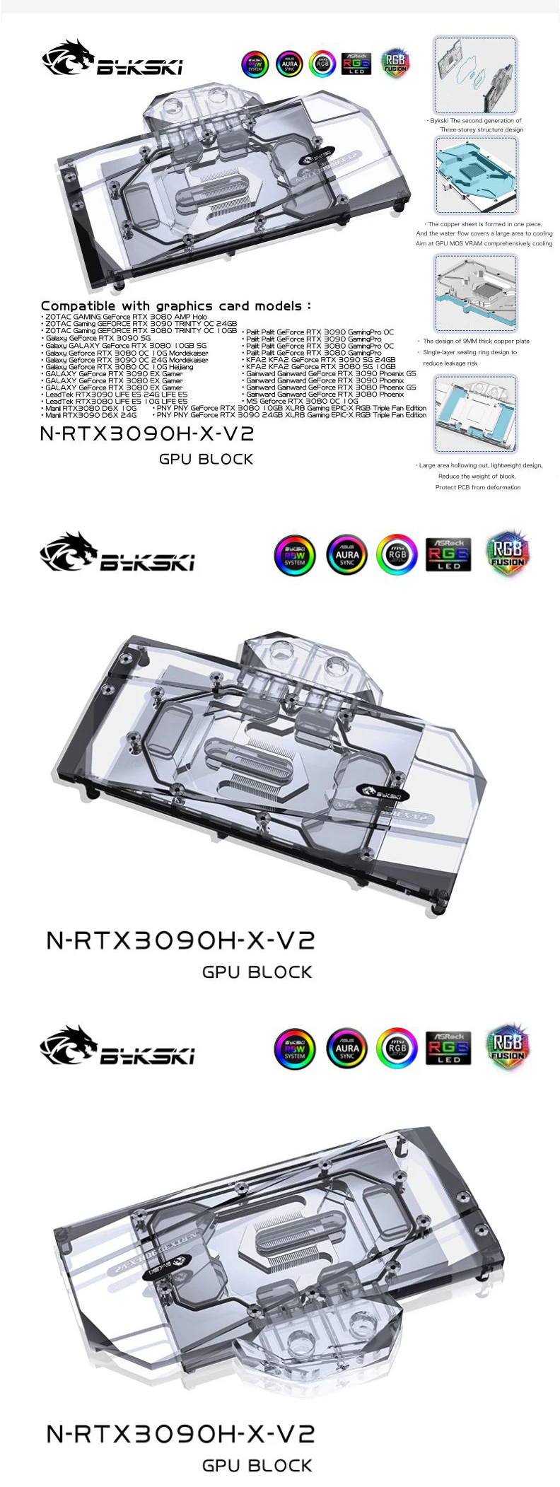 Bykski GPU радиатор охлаждения воды блок для ZOTACGALAXYLeadTekManliPNYPalitKFA2GaniwardMAXSUN30903080 RGB N-RTX3090H-X-V2