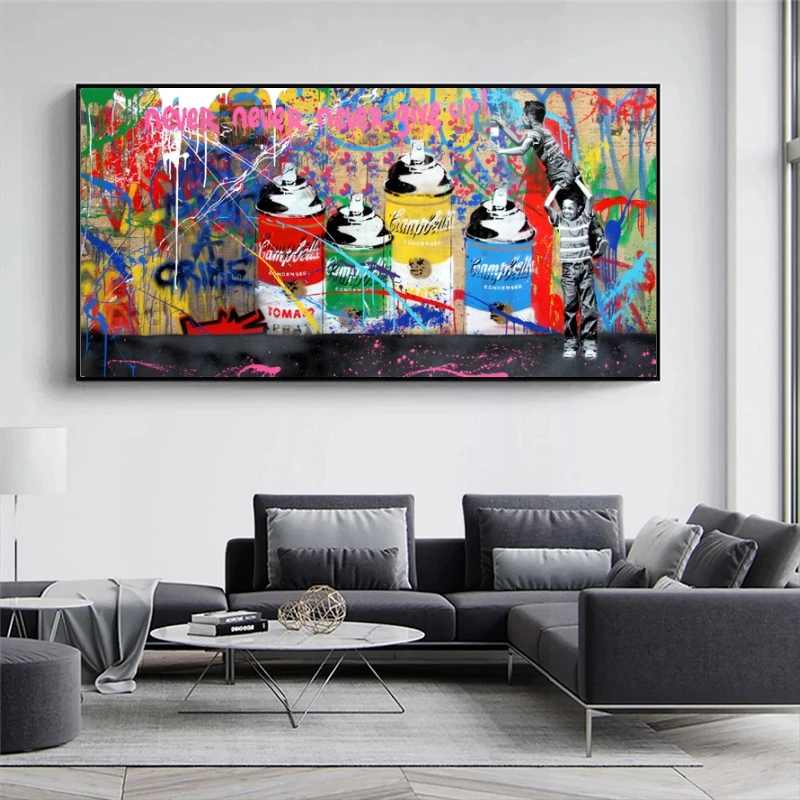 Бэнкси арт "Never Give Up", из плотной ткани настенные картины художественные плакаты и принты граффити в стиле протестного уличного искусства фотографии для современного дома Cuadro