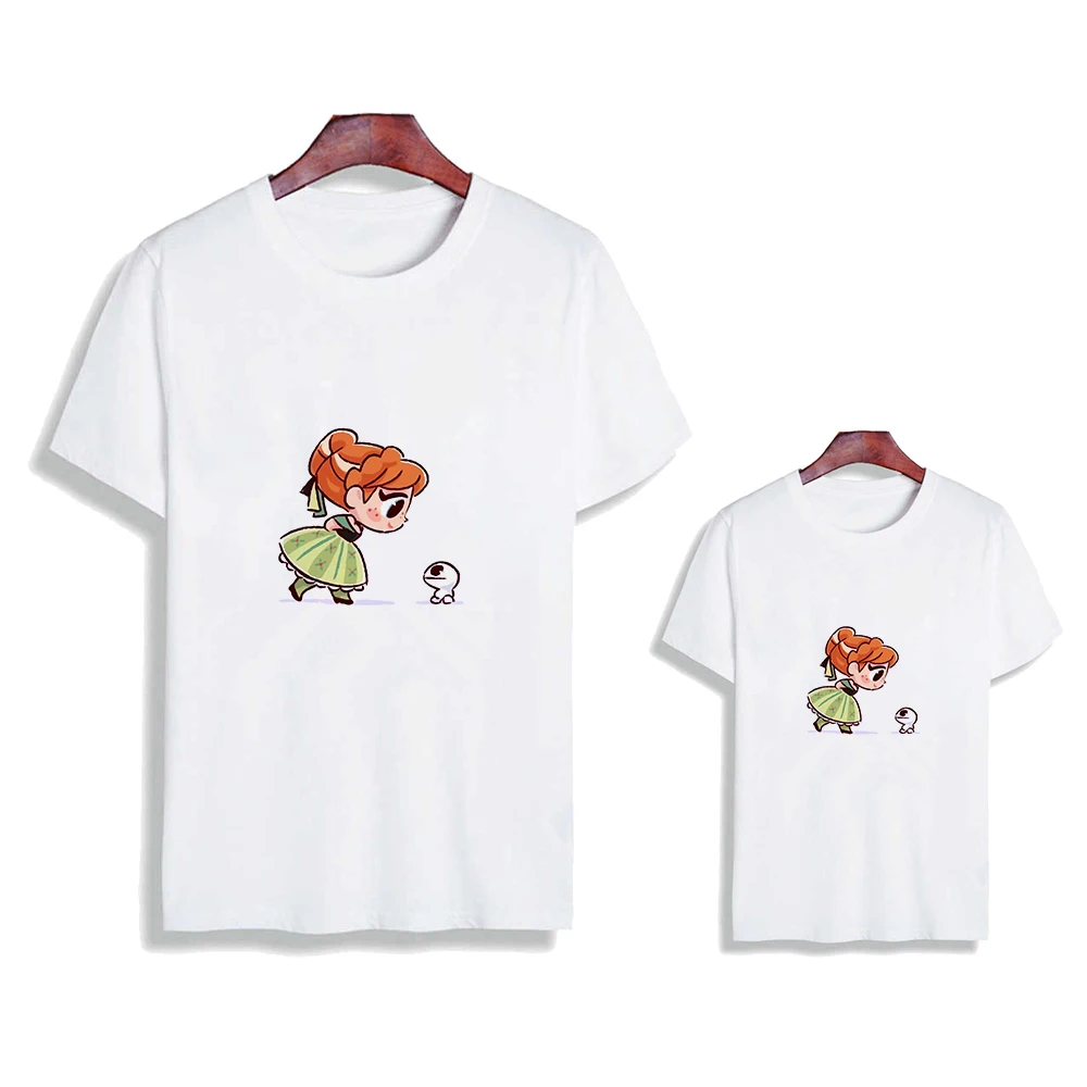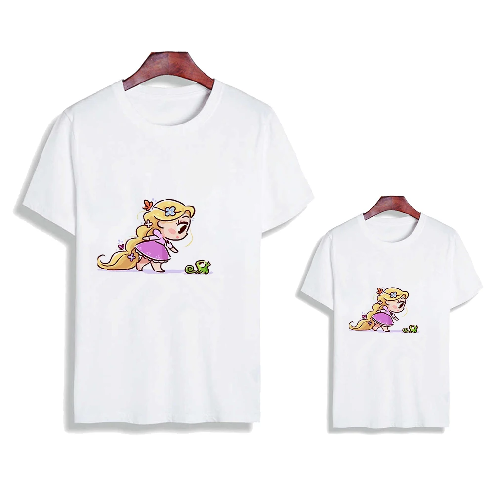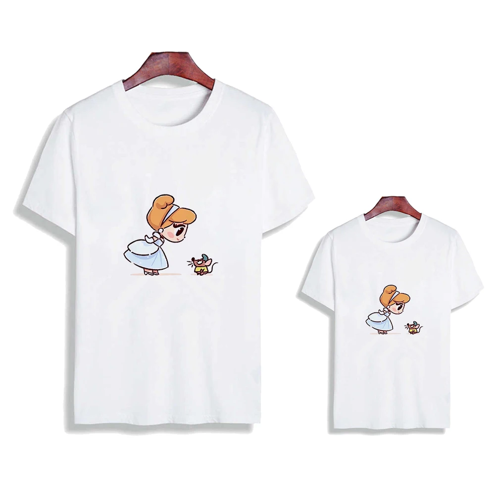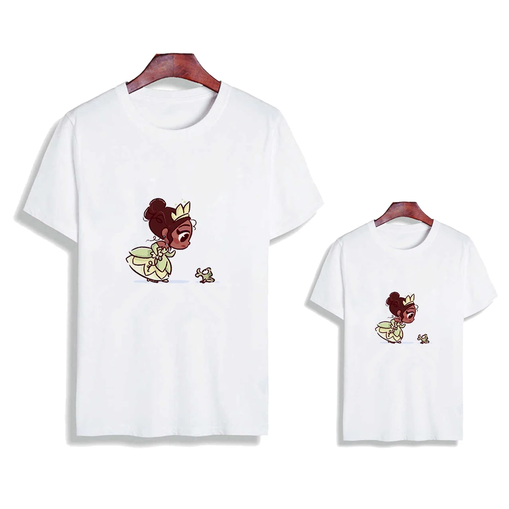 Летняя футболка женская мода Disney бальное платье Принцесса и лягушка с мультяшным принтом в стиле Харадзюку, футболки для детей, новые футболки для всей семьи, наряды
