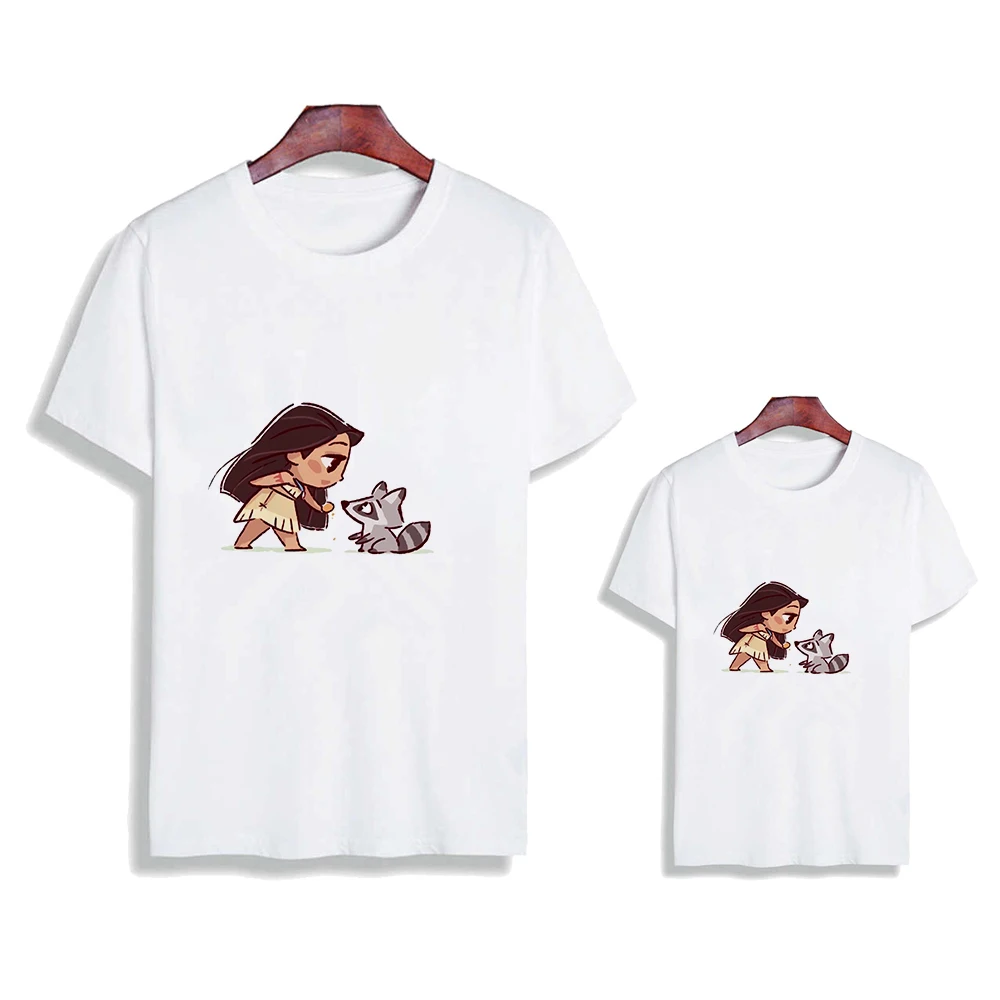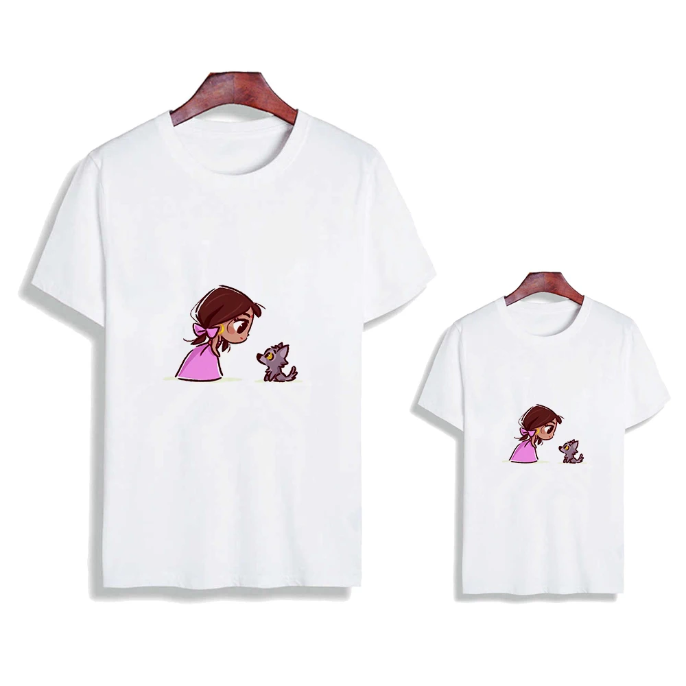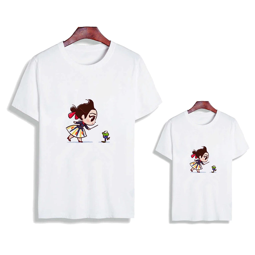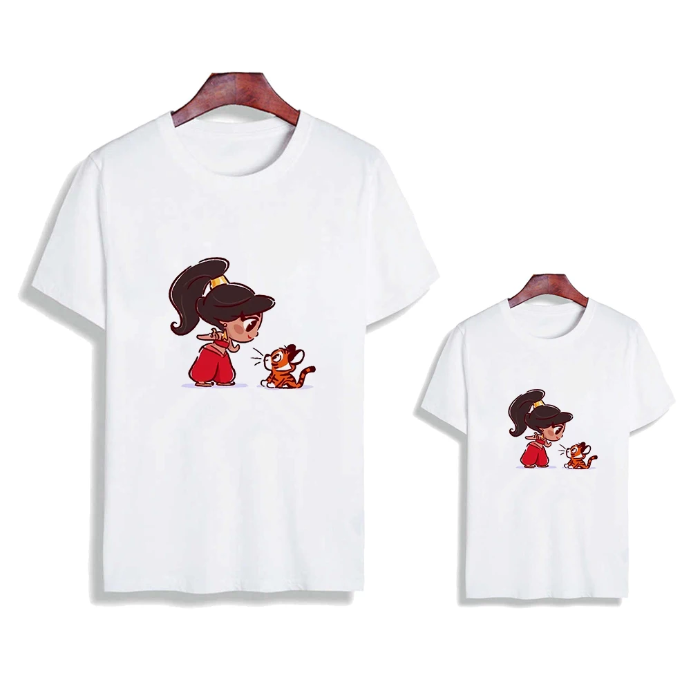 Летняя футболка женская мода Disney бальное платье Принцесса и лягушка с мультяшным принтом в стиле Харадзюку, футболки для детей, новые футболки для всей семьи, наряды