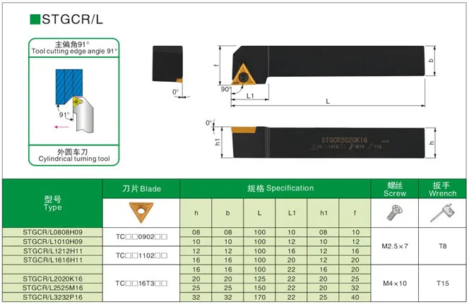 Держатель токарного инструмента STGCR 2020K16 STGCL2020K16, твердос...