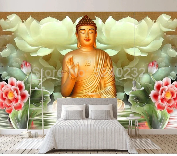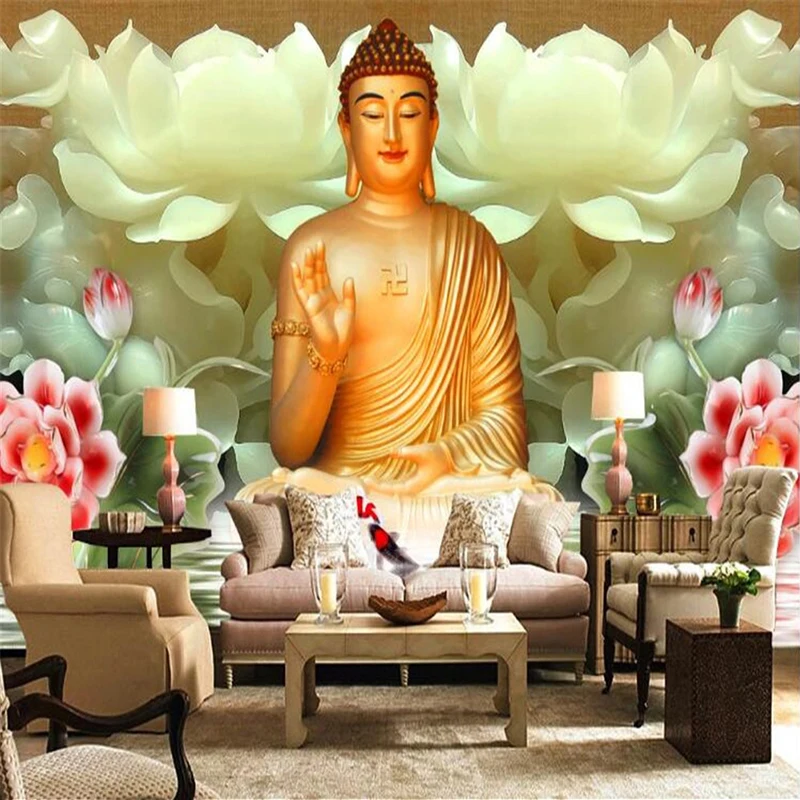 Фотообои на заказ 3D стереоскопическая Нефритовая резьба статуя Будды фото настенная живопись спальня исследование гостиная ТВ фон обои