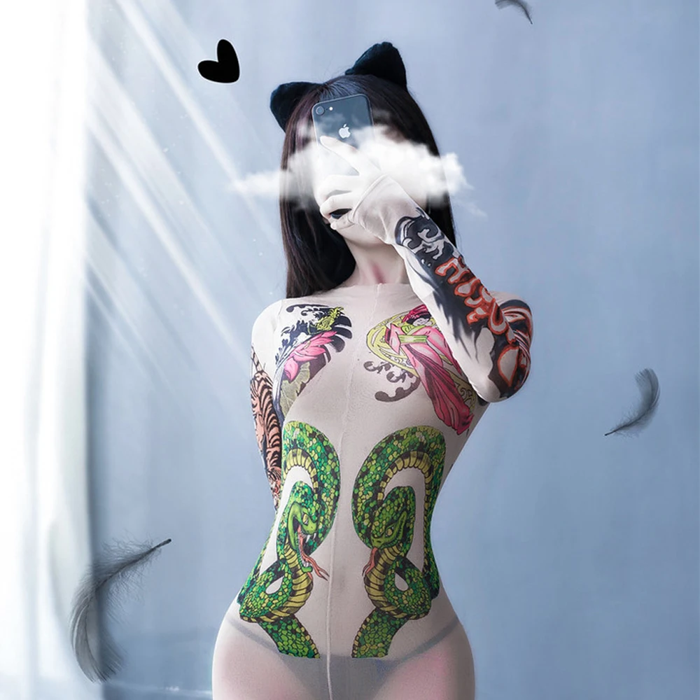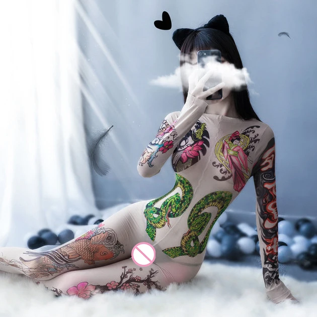 Женские колготки на все тело, длинные чулки с татуировкой, сексуаль...