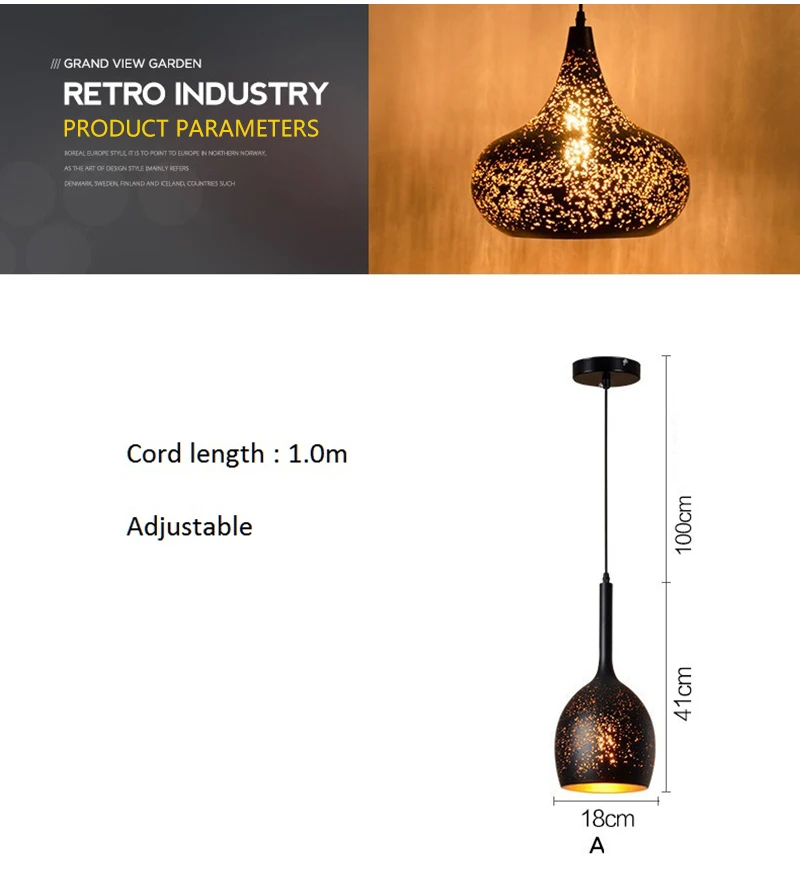 Марокканский подвесной светильник в стиле лофт, промышленный черный светодиодный светильник E27 для гостиной, кафе, кухни, домашний декор
