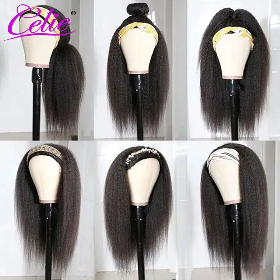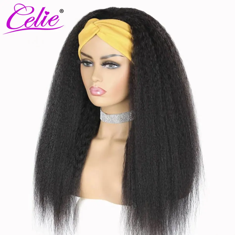 Парик Celie из парик с головной повязкой натуральных волос, прямой, без клея, 150% шелковый шарф, парик с головной повязкой парики из натуральных волос для чернокожих женщин