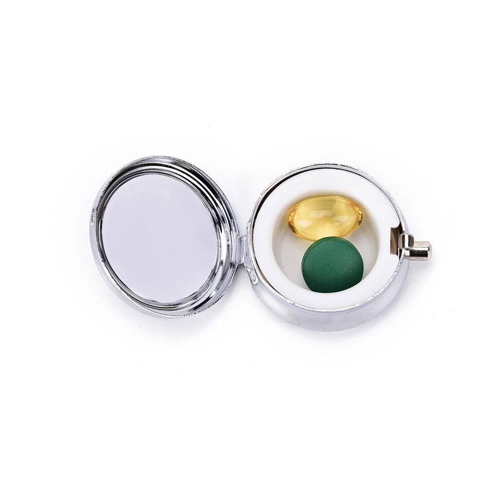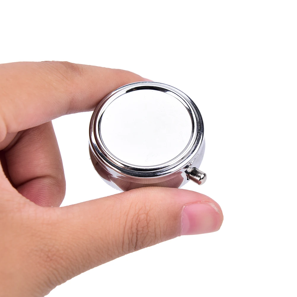 2017 разделитель для хранения 1 шт.лот, металлический круглый серебряный контейнер для таблеток, держатель, удобный контейнер, контейнер для лекарств, маленький контейнер