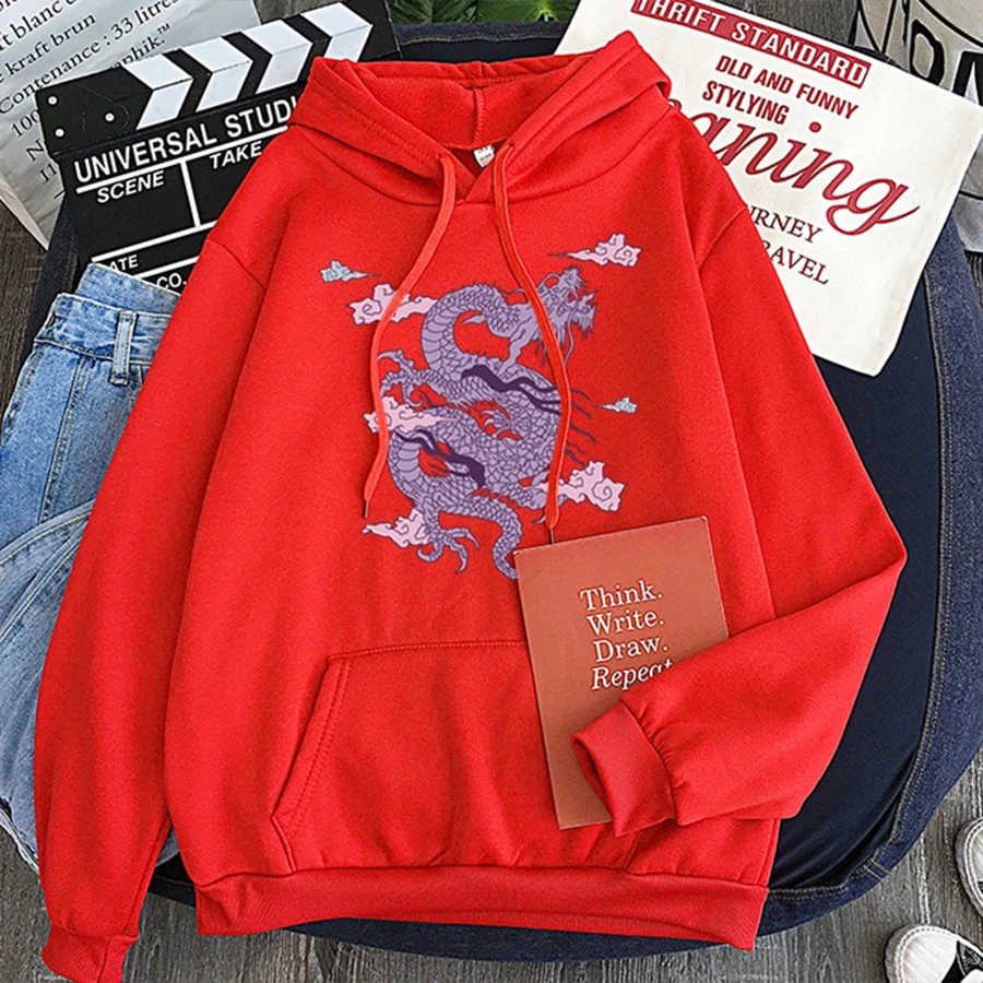 Женская толстовка с принтом дракона в стиле Харадзюку, свободная по...