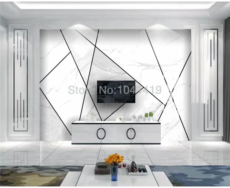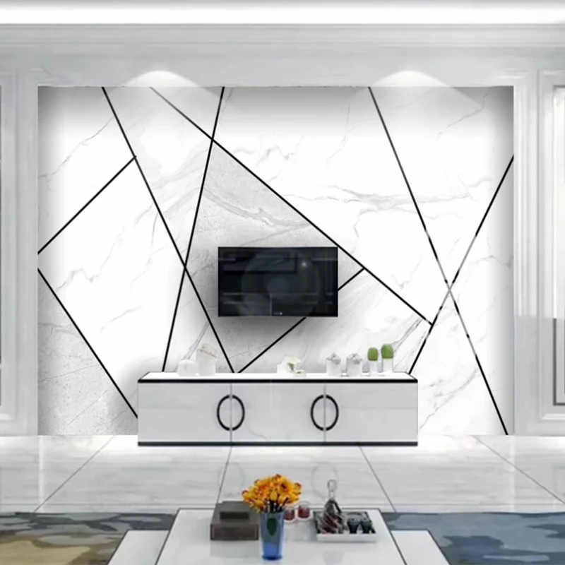 Пользовательские Настенные обои современные 3D джаз белый мрамор Геометрическая линия фото обои Гостиная ТВ диван спальня Papel де Parede 3 D