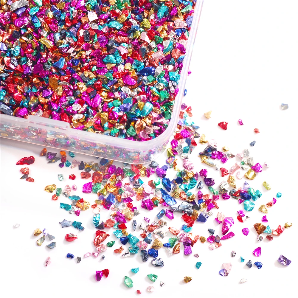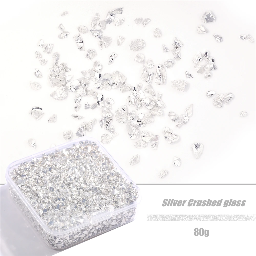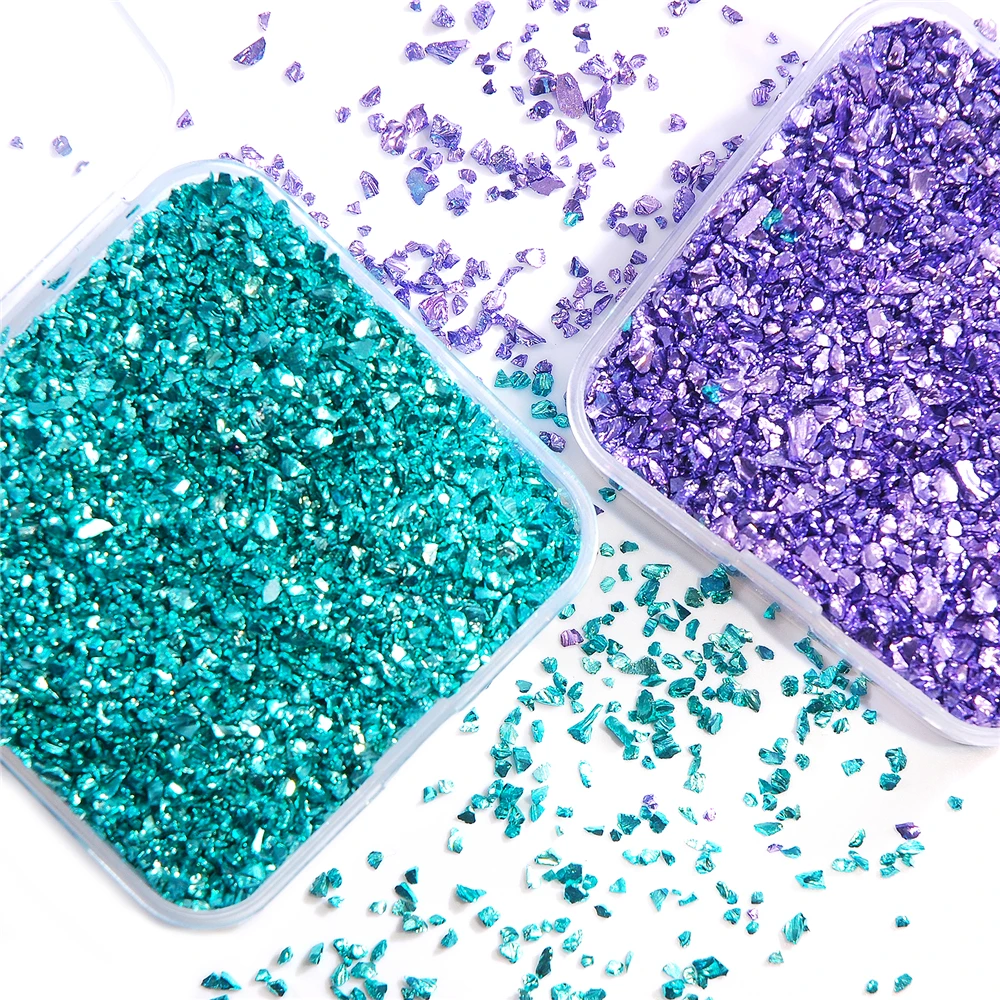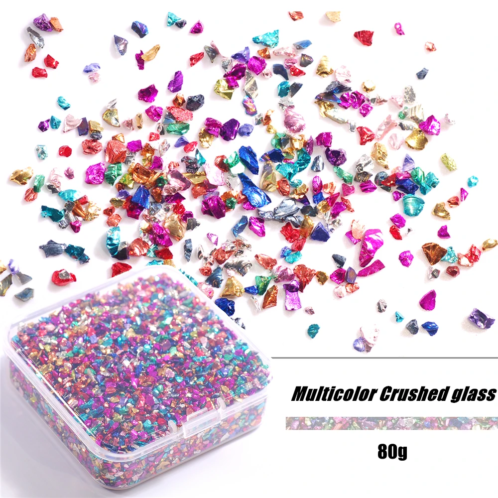 Коробка80 г 2-4 мм Красочный неправильной раздавливания гравия щебень камни стразы дизайн ногтей хрустальные украшения аксессуары