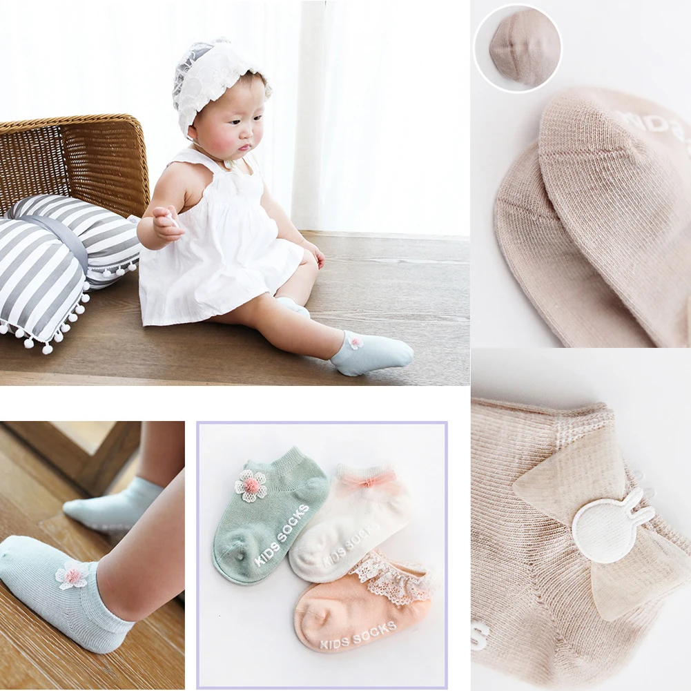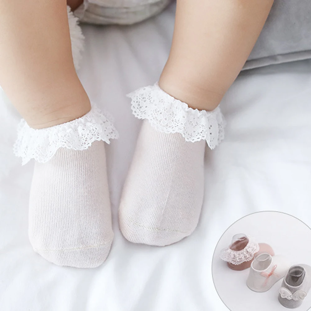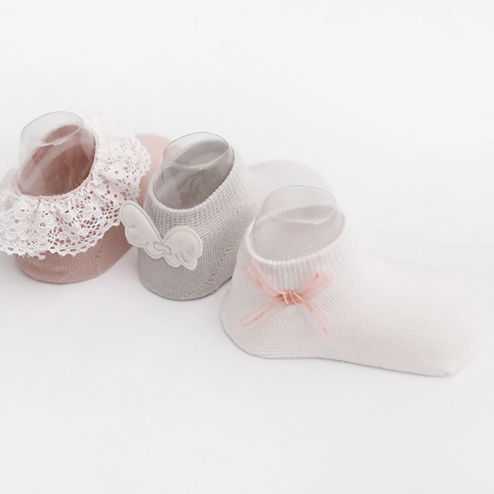 Pudcoco новорожденных для маленьких девочек аксессуары, мягкие, хлопковые, в стиле принцесс с кружевным бантом Ангел носки до лодыжки 3 паркомплект Детские носки От 0 до 3 лет