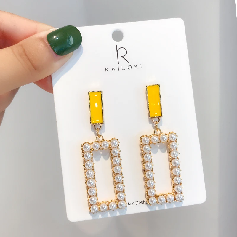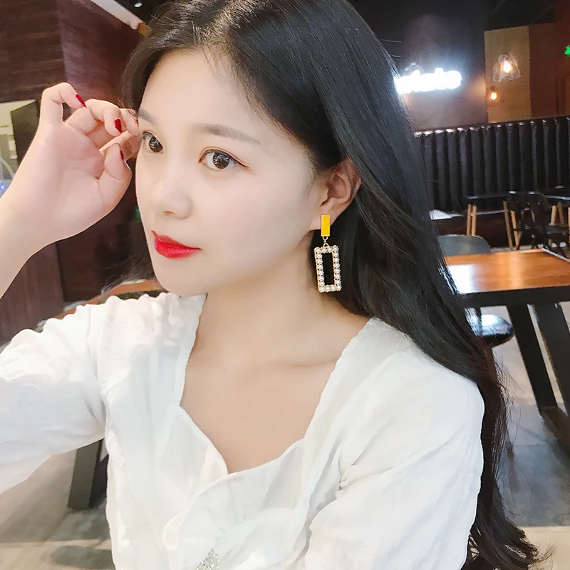 Женские Висячие серьги с искусственным жемчугом, квадратные вечерние серьги в Корейском стиле, 2021