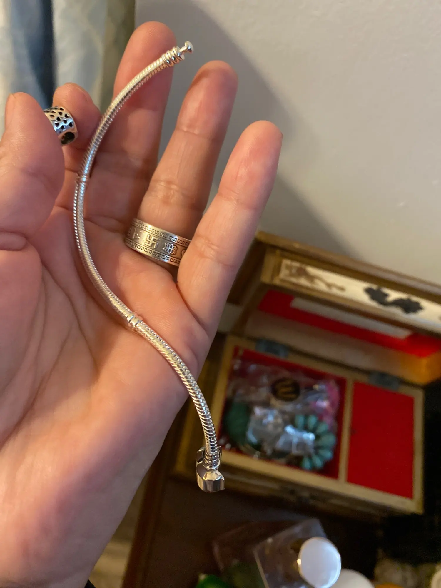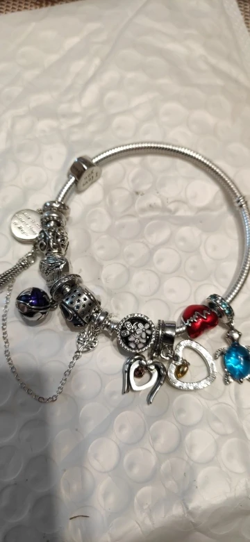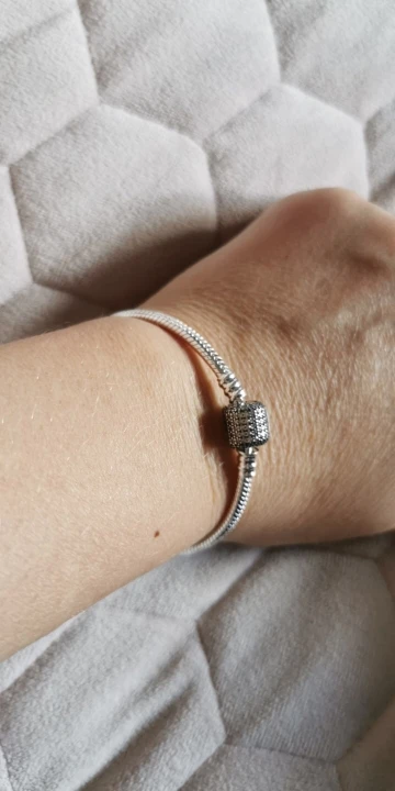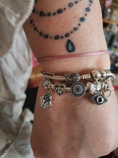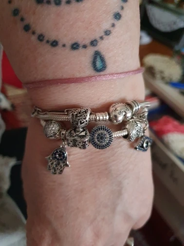 Joli mais difficile à mettre, un peu peur qu'il casse. mes charms Aliexpress ne passent pas tous dessus. j'ai un petit poignet et j'ai pris la plus petite taille mais quand je mets des charms dessus c'est trop serré et me fait mal... J'ai d'autre bracelet charms de 17cm et ils me vont très bien