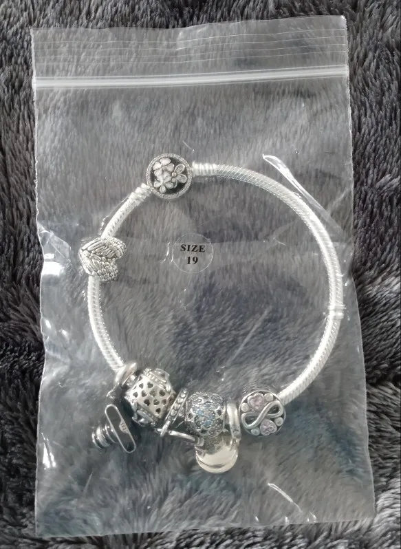 Отличное качество! Так красиво! Размер 19 см идеально подходит для меня, маленькие руки. Спасибо! Отличное качество. Красивый браслет. Размер 19 см, у меня маленькое запястье (на случай, если они не поймут мою руку, оно маленькое). Я также купил «прелести», и мой браслет выглядит красиво. I Am Very Happy with This product. Я рекомендую вам купить браслет и «прелести» с тем же продавцом, чтобы все было вместе. Большое спасибо!